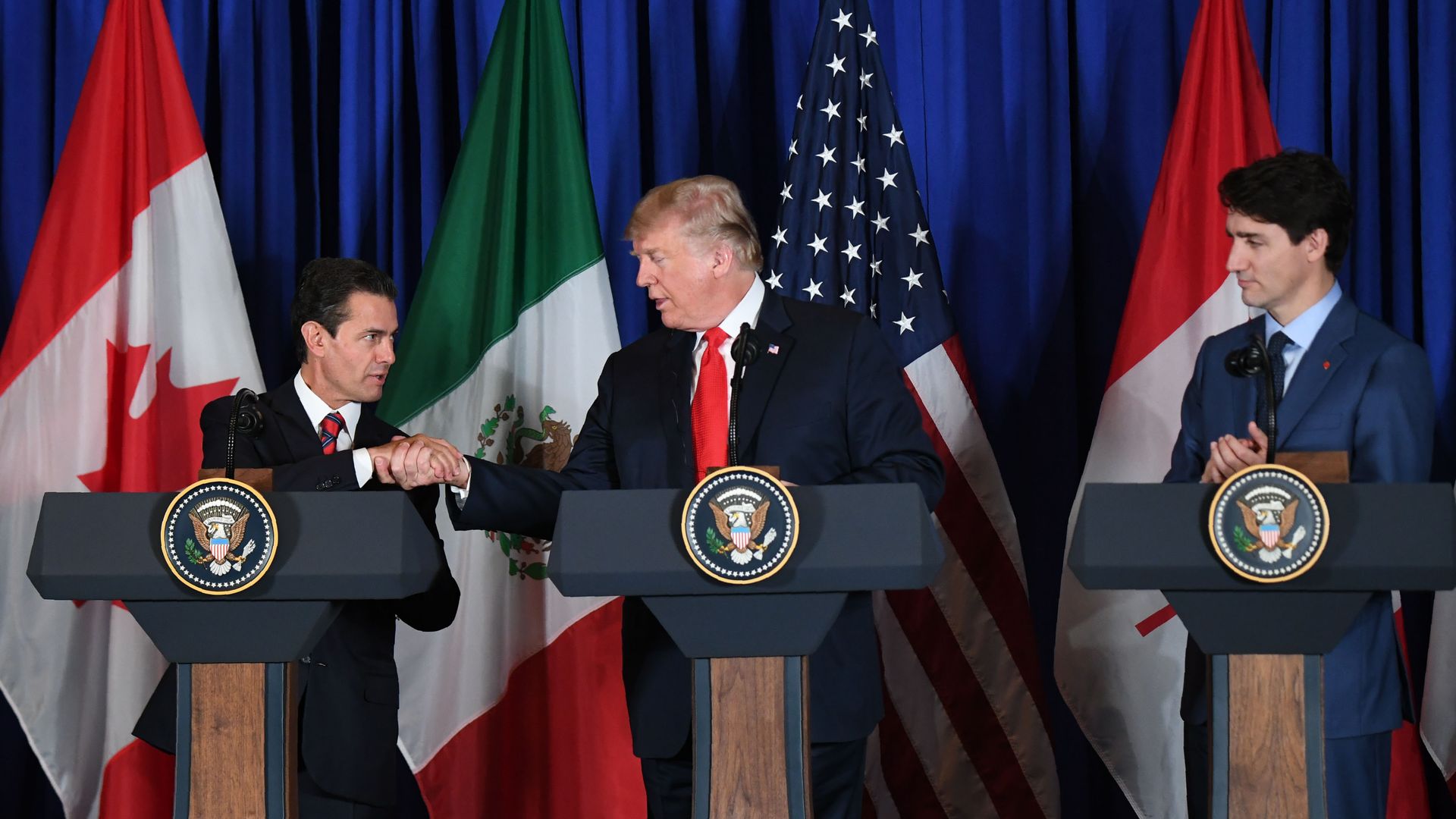 Former Mexican President Enrique Peña Nieto, President Trump and Canadian Prime Minister Justin Trudeau at the G20 last year. Photo: Martin Bernetti/AFP/Getty Images