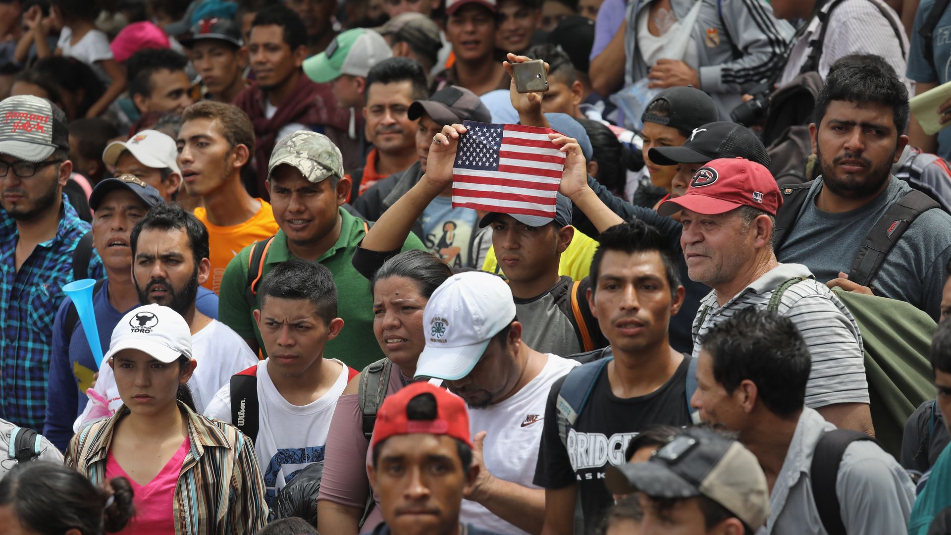 A migrant caravan crosses from Guatemala into Mexico. Photo: John Moore/Getty Images