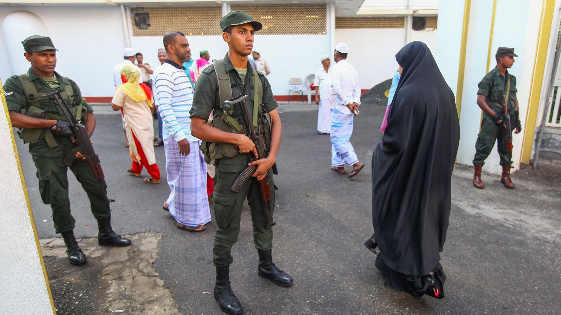 Muslims arrive for prayers at the Grand Mosque in the capital, Colombo. Photo: Chamila Karunarathne/Anadolu Agency/Getty Images