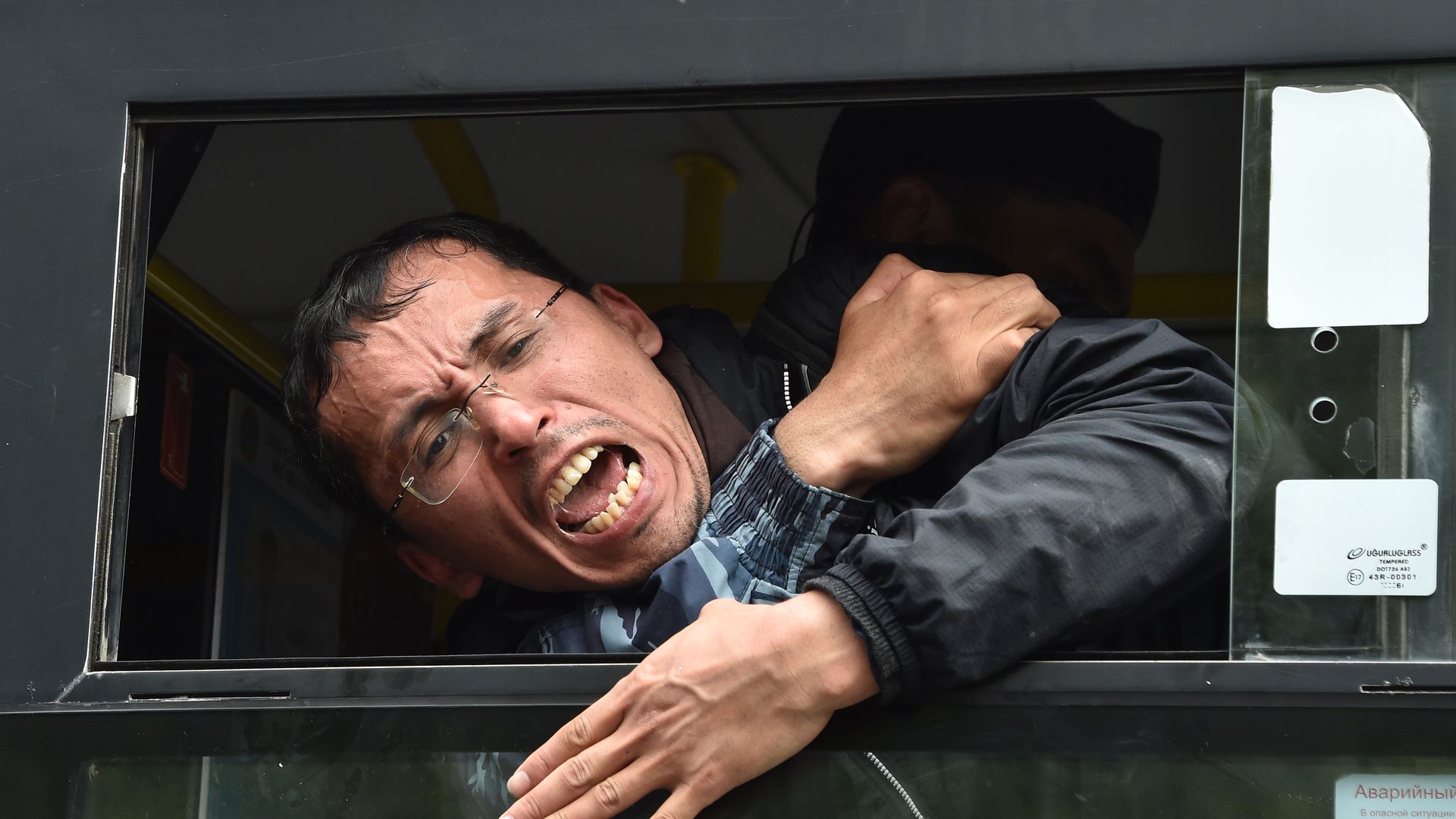 An opposition supporter shouts after being detained in Nur-Sultan, Kazakhstan. Photo: VyacheslavOseledko/AFP/Getty Images