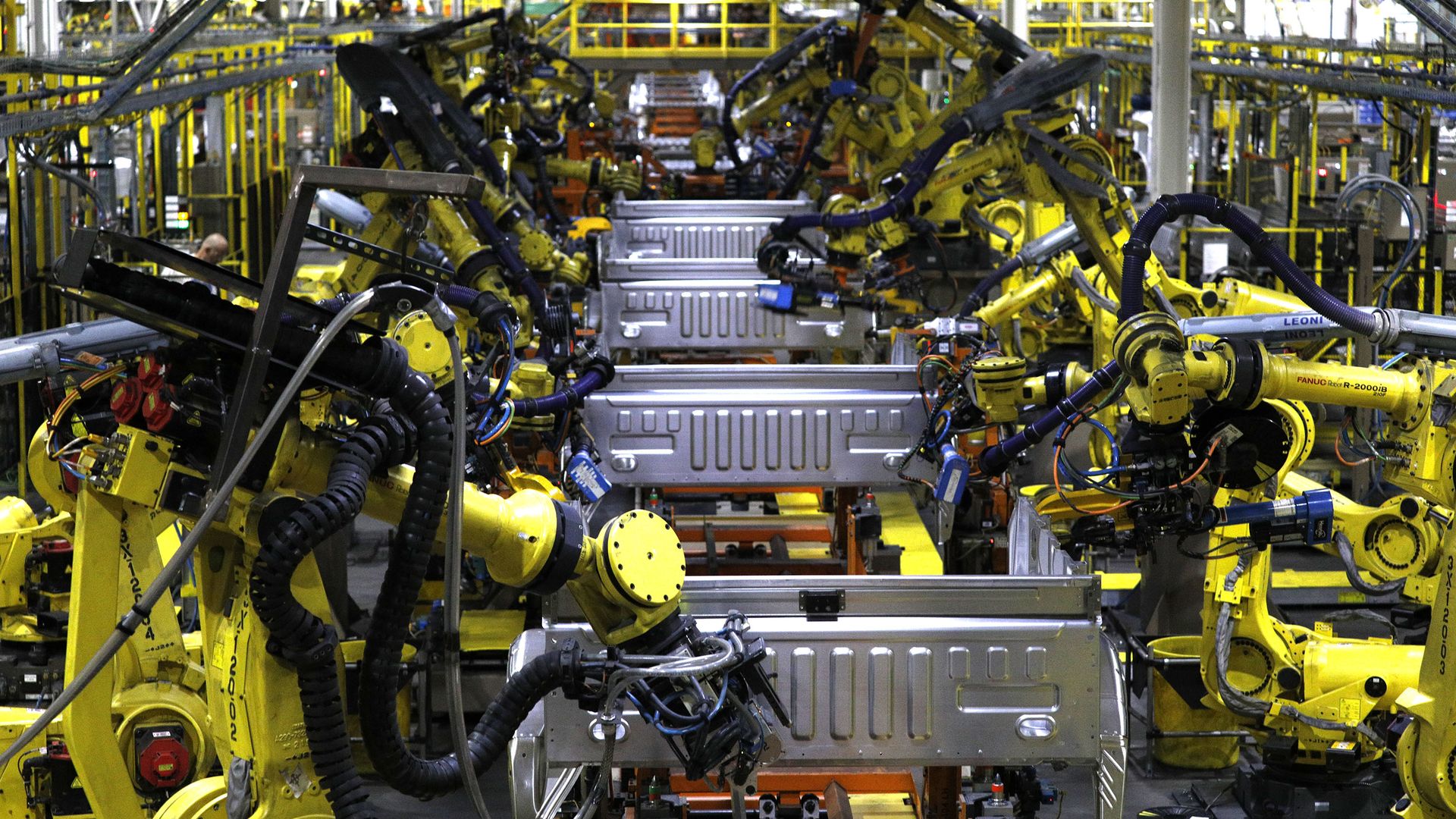 Robots on a Ford assembly line in Michigan. Photo: Bill Pugliano/Getty Images