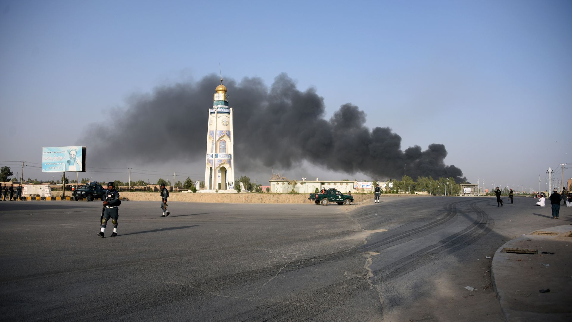 Afghan policemen arrive near a site of a car bomb in Kandahar. Photo: Javed Tanveer/AFP/Getty Images