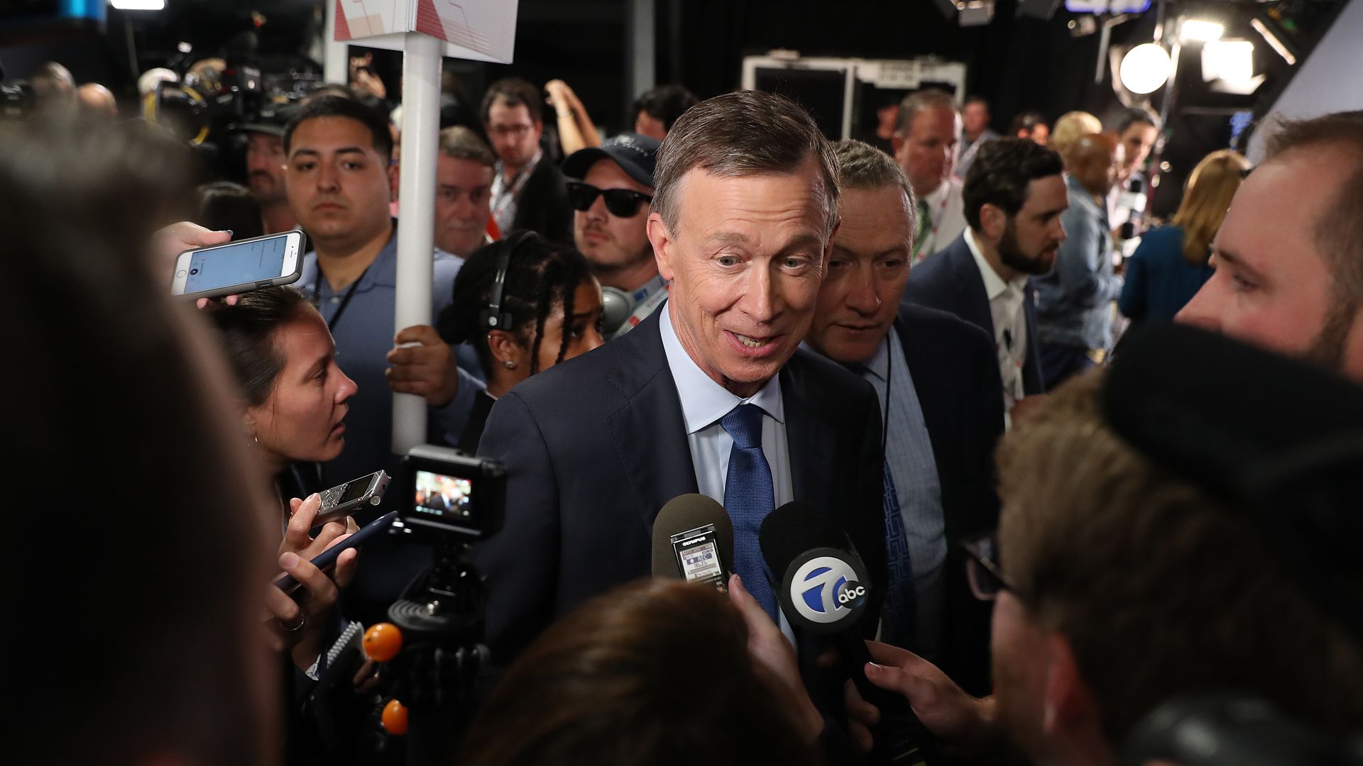 Hickenlooper talking to reporters after the second debate. Photo: Justin Sullivan/Getty Images