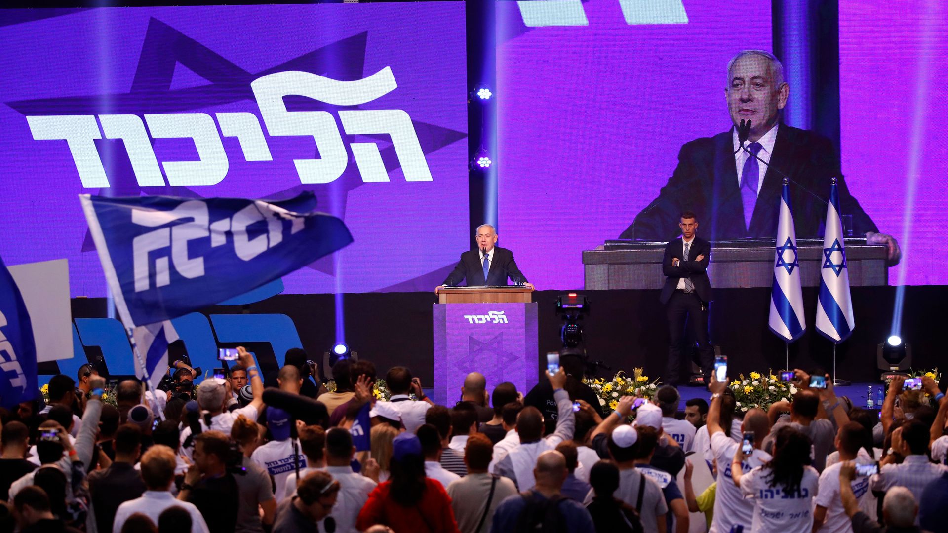 Netanyahu addresses supporters on election night. Photo: Jack Guez/AFP/Getty Images