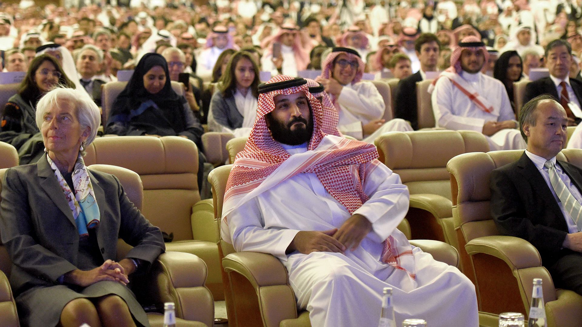 Crown Prince Mohammed bin Salman at the conference in 2017 — with then-IMF head Christine Lagarde at left. Photo: Fayez Nureldine/AFP/Getty Images