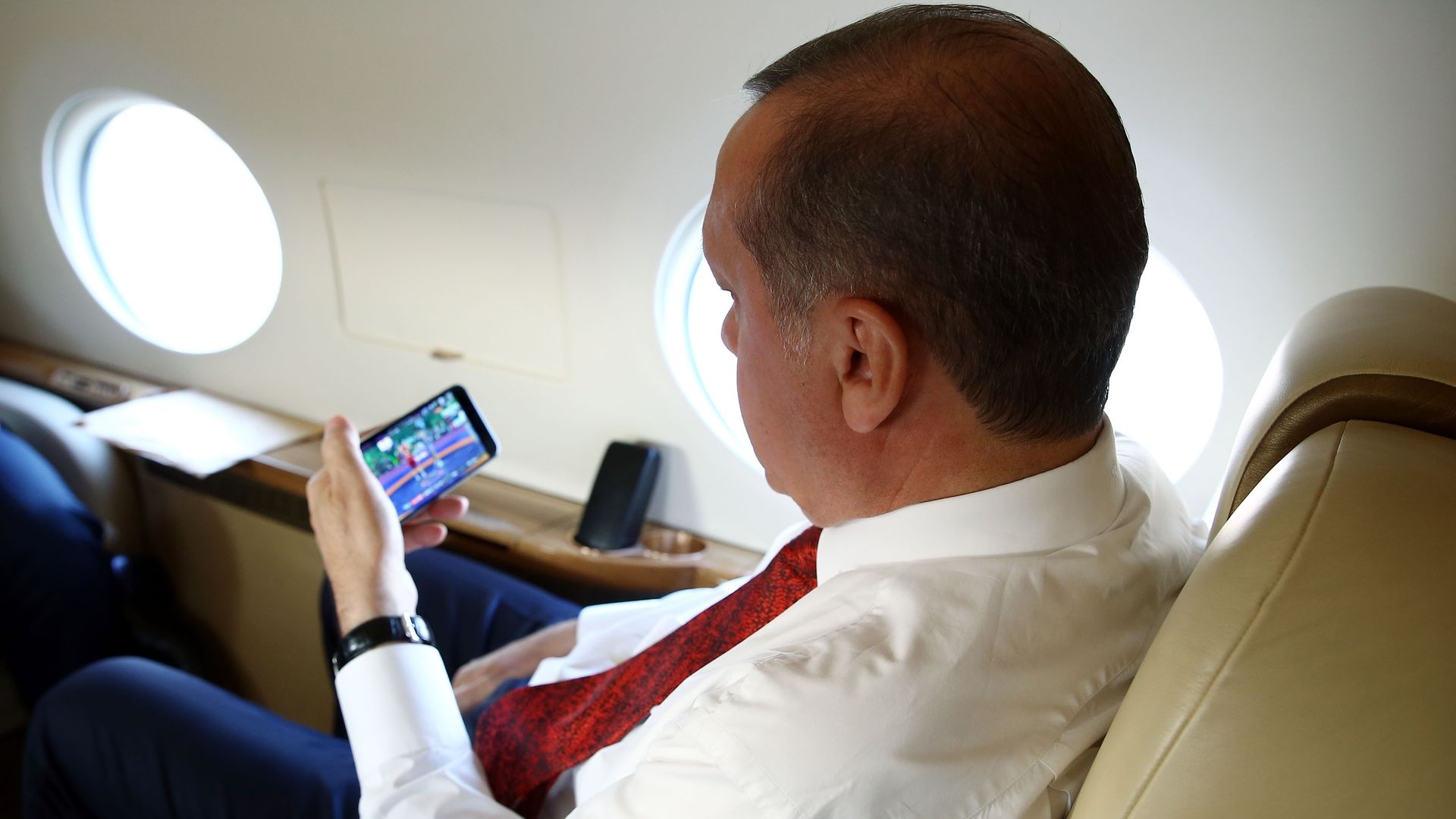 Erdogan takes a break from updating his Wikipedia profile to catch some wrestling. Photo: Yasin Bulbul/Turkish Presidency Press Office/Anadolu Agency/Getty Images