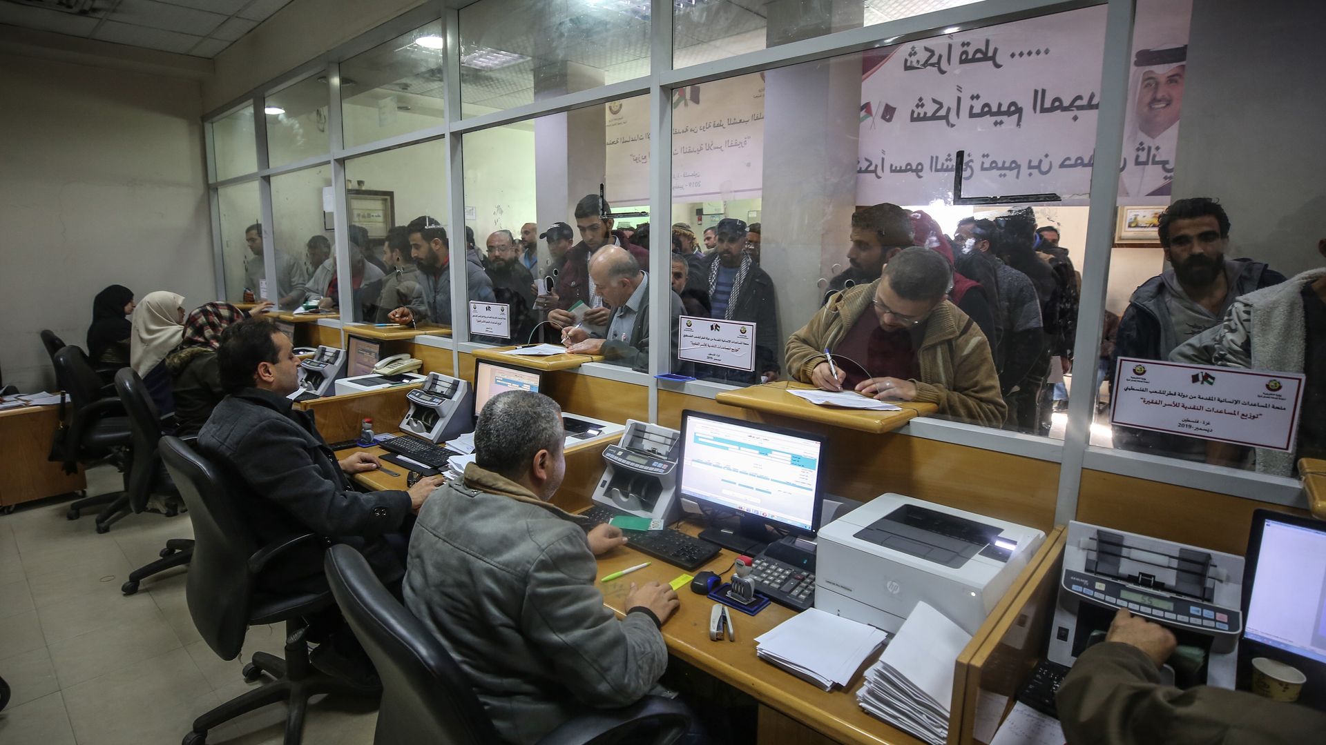 Waiting in line to recieve financial assistance from Qatar, in Gaza City. Photo: Al H.m. Jadallah/Anadolu Agency via Getty