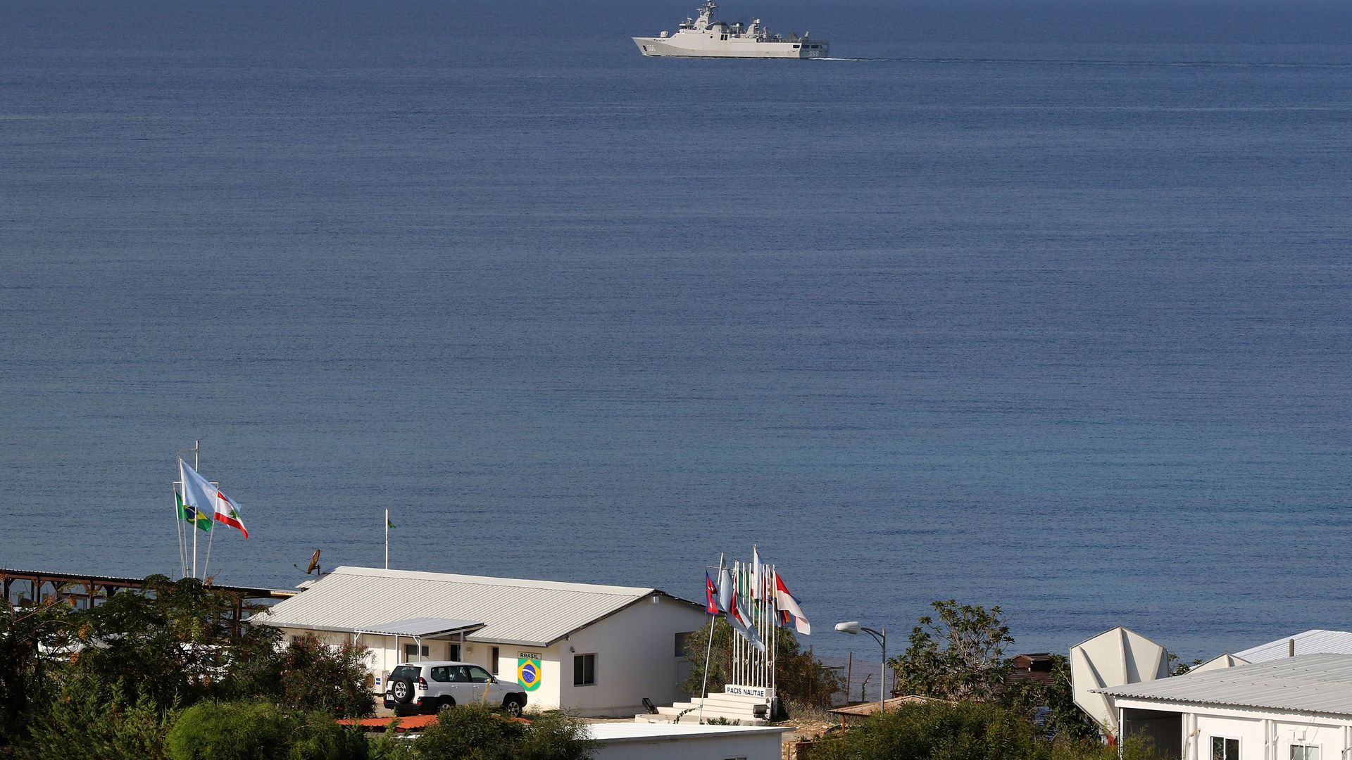 A UN peacekeeping boat off of Naqoura. Photo: Mahmoud Zayyat/AFP via Getty