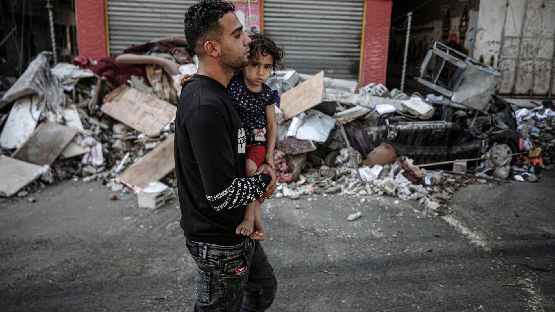 Father and daughter in Gaza City. Photo: Ali Jadallah/Anadolu Agency via Getty Images