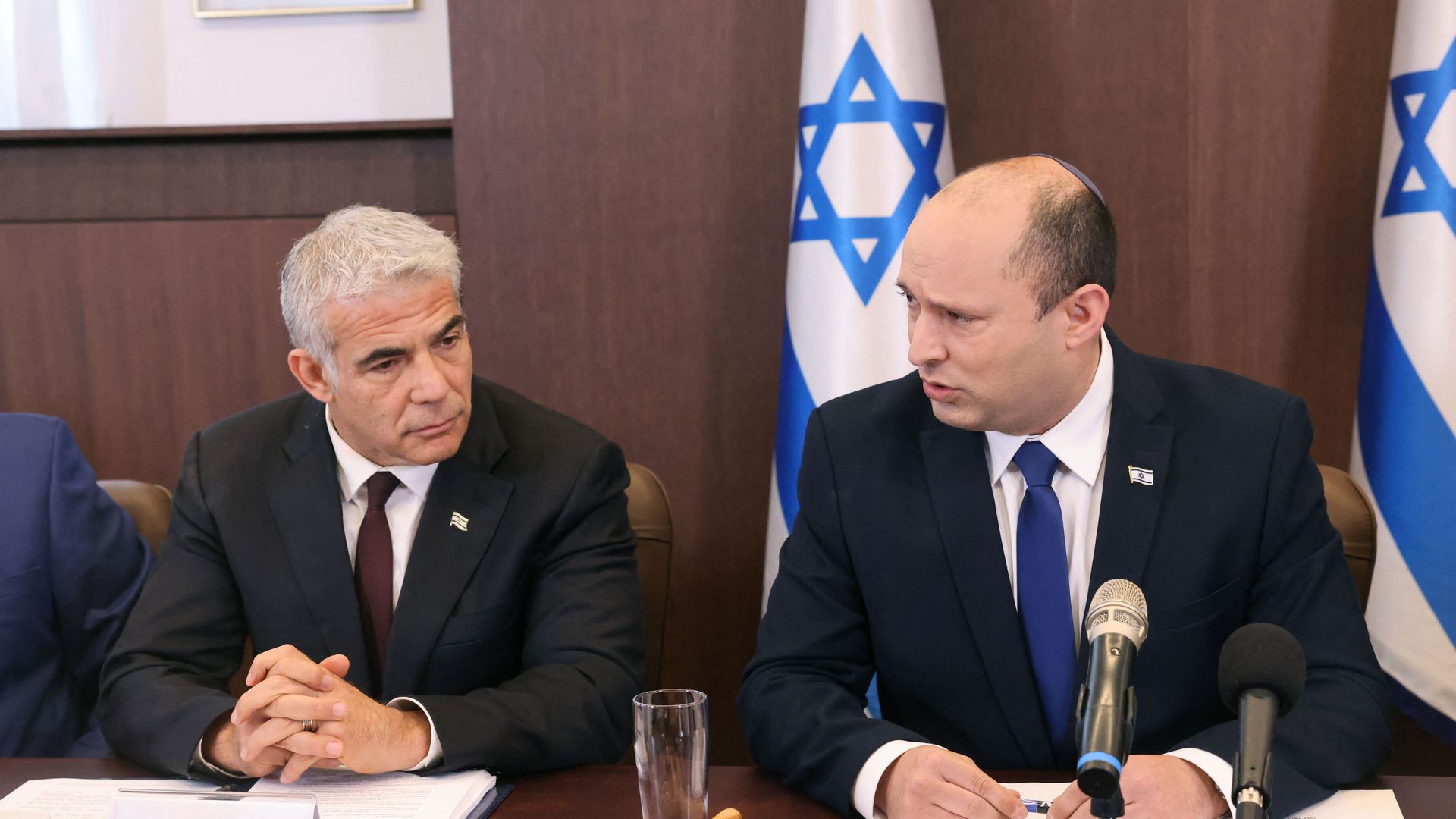 Bennett (R) and Lapid. Photo: Emmanuel Dunand/POOL/AFP via Getty