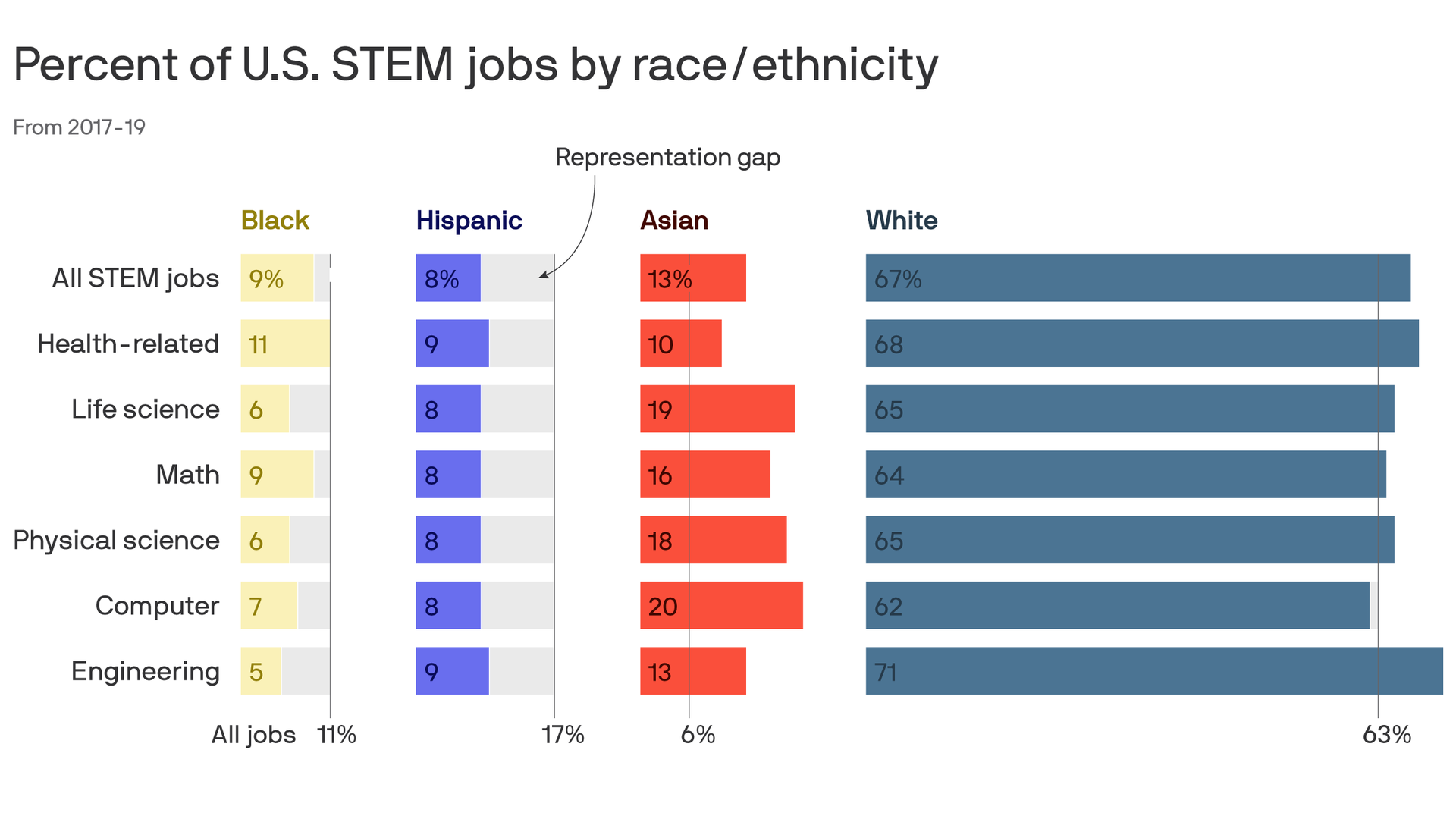 By the numbers: In 2019, nearly 70% of doctorate recipients who were U.S. citizens or permanent residents were white.