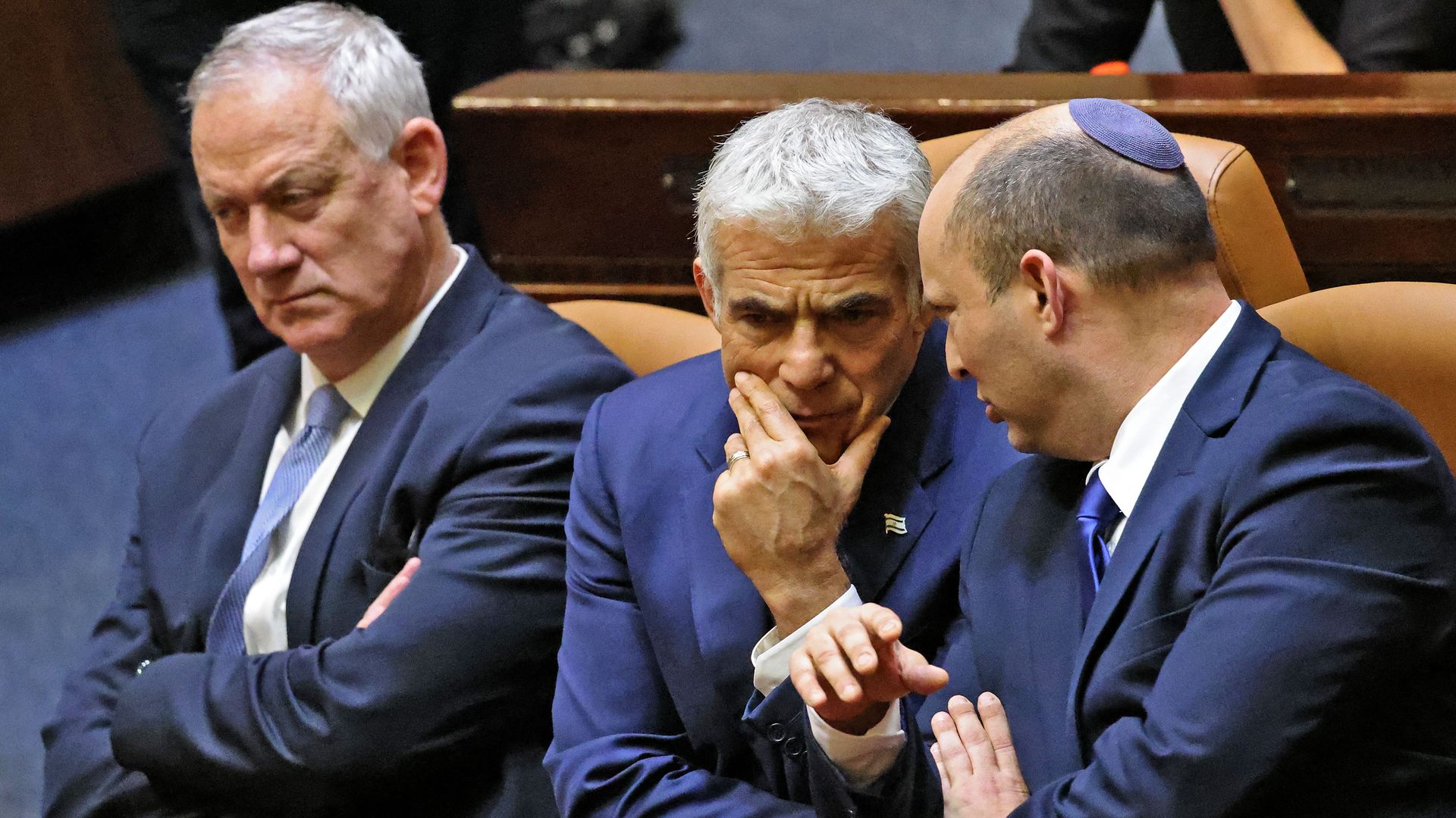 Benny Gantz (left), Yair Lapid (center) and Naftali Bennett. Photo: Emmanuel Dunand/AFP via Getty