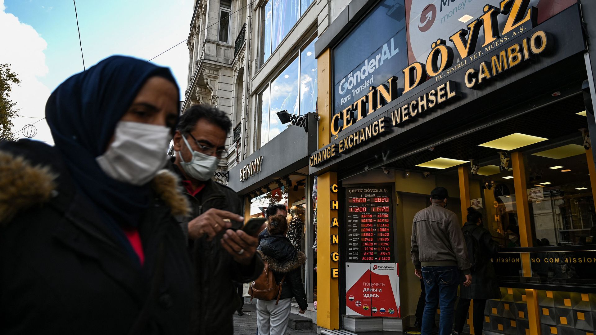 Waiting to exchange money. Photo: Ozan Kose/AFP via Getty