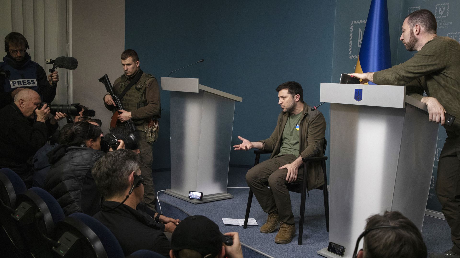 Ukrainian President Volodymyr Zelensky at a press conference on March 3. Photo: Laurent Van der Stockt for Le Monde/Getty Images
