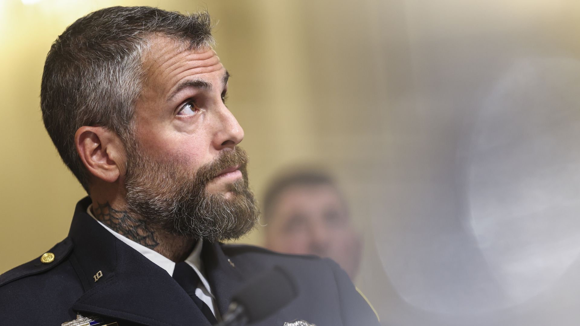 Michael Fanone testifies before the House Select Committee investigating the Jan. 6 attack on the U.S. Capitol on July 27, 2021, at the Cannon House Office Building in Washington, D.C. Photo: Oliver Contreras-Pool/Getty Images