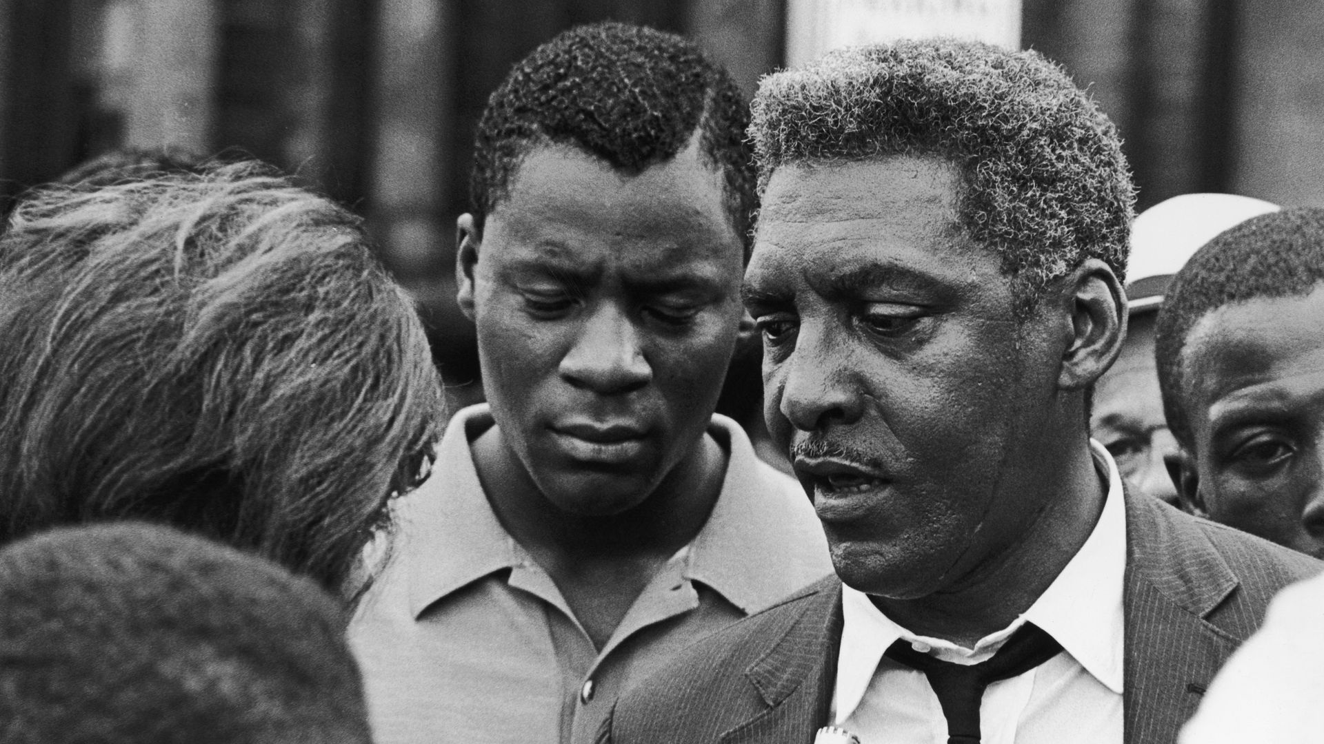 Civil rights activist Bayard Rustin talks to a reporter during the Harlem Riots in Manhattan on July 23, 1964. Photo: Express/Hulton Archive/Getty Images