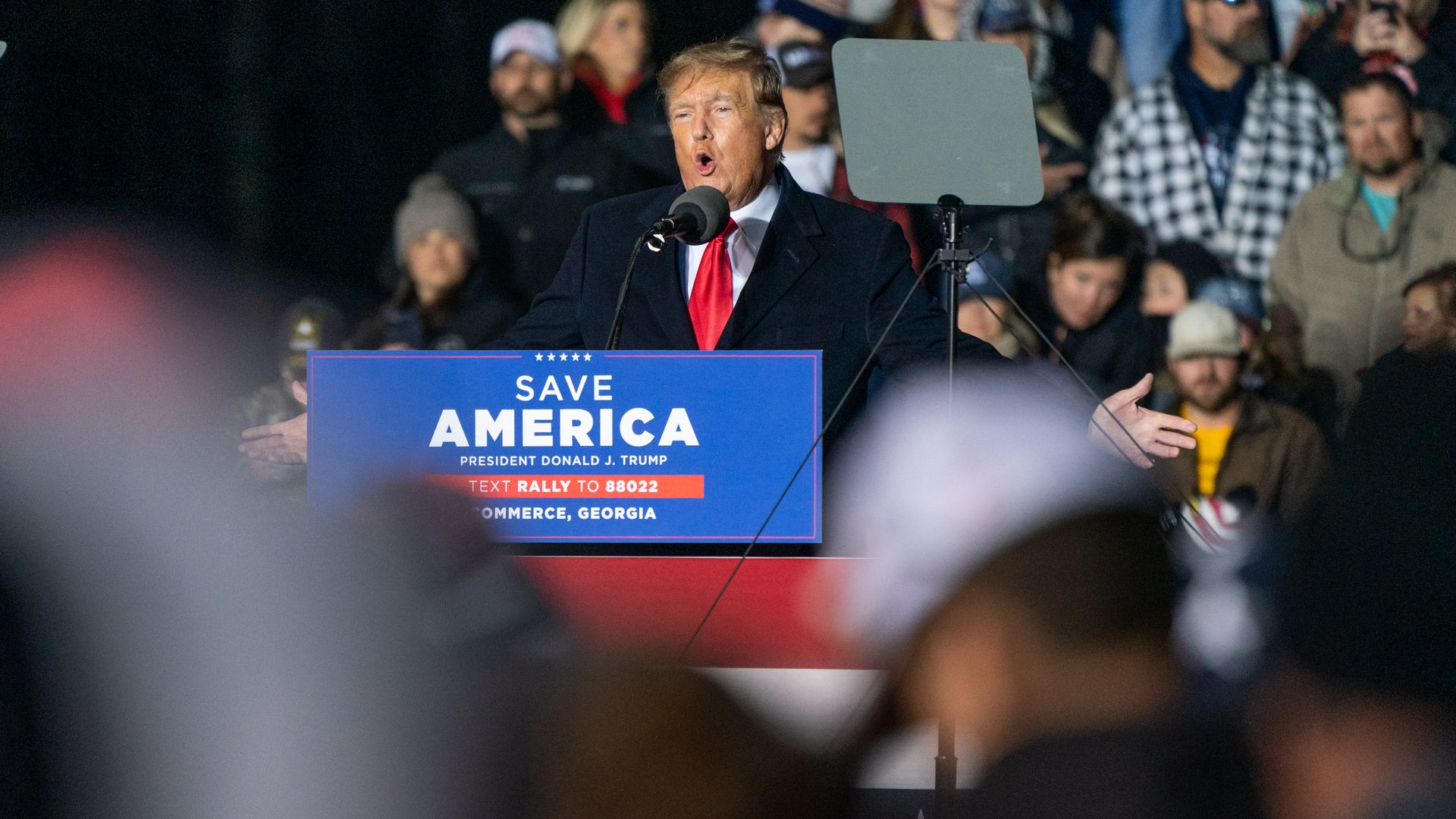 Former President Trump speaks at a rally in Commerce, Ga., on March 26. Photo: Elijah Nouvelage/Bloomberg via Getty Images