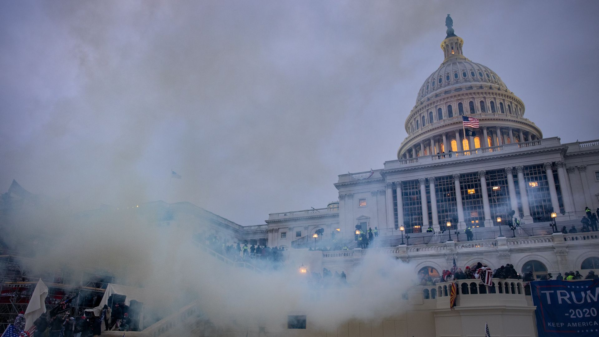 Tear gas is fired at supporters of President Trump who stormed the U.S. Capitol building on Jan. 6, 2021. Photo: Evelyn Hockstein/For The Washington Post via Getty Images