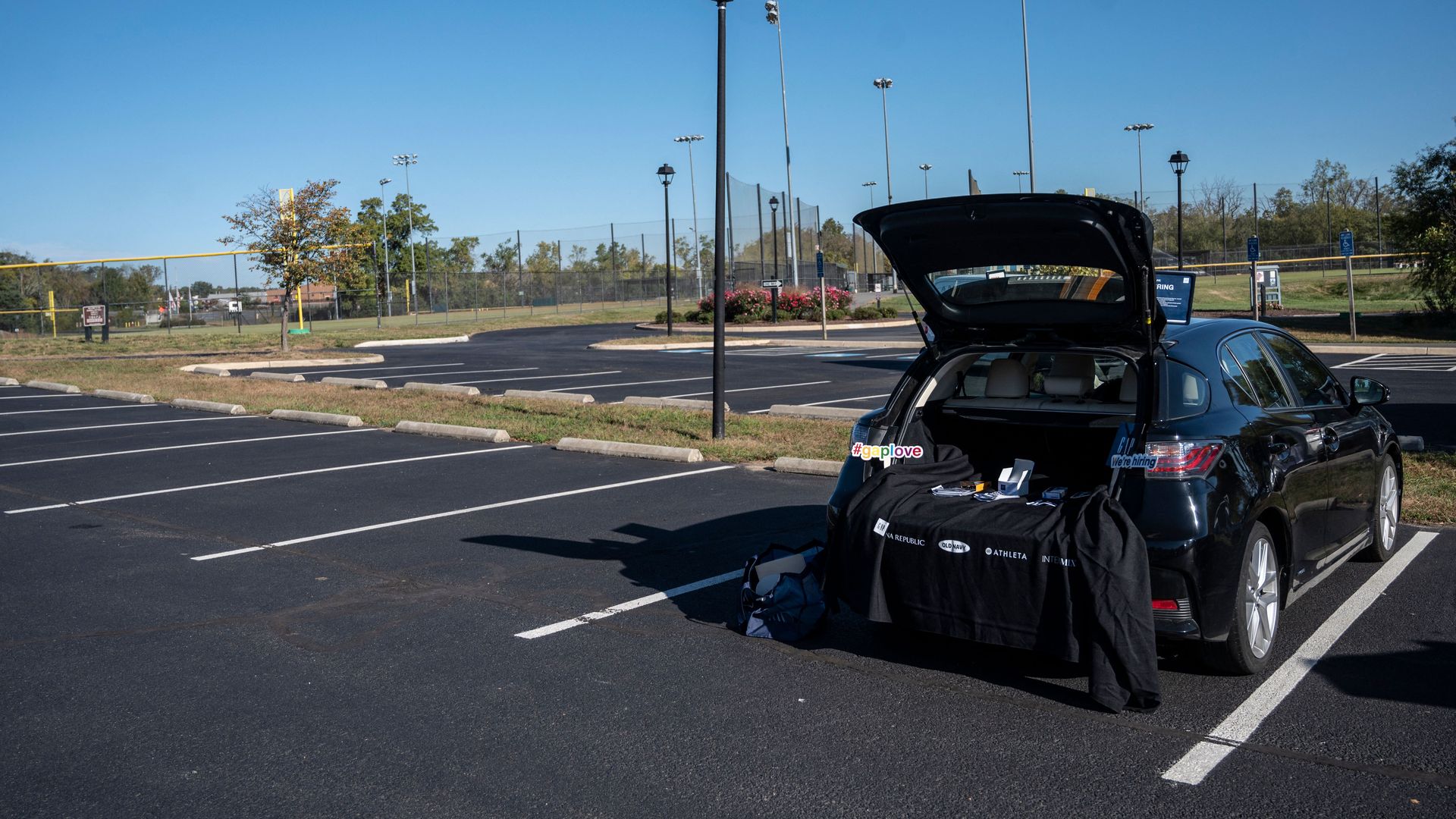 The car for a recruiter from the Gap sits in an empty parking lot during a job fair in Leesburg, Virginia. Photo: ANDREW CABALLERO-REYNOLDS/AFP via Getty Images