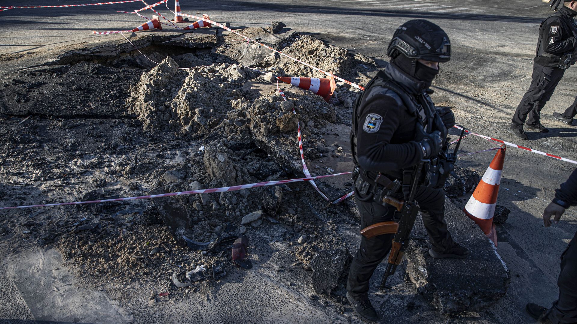A view of a damage occurred on Taras Shevchenko Avenue, where one of the Russia's missile attacks took place, in Kyiv, Ukraine. Photo: Metin Aktas/Anadolu Agency via Getty Images