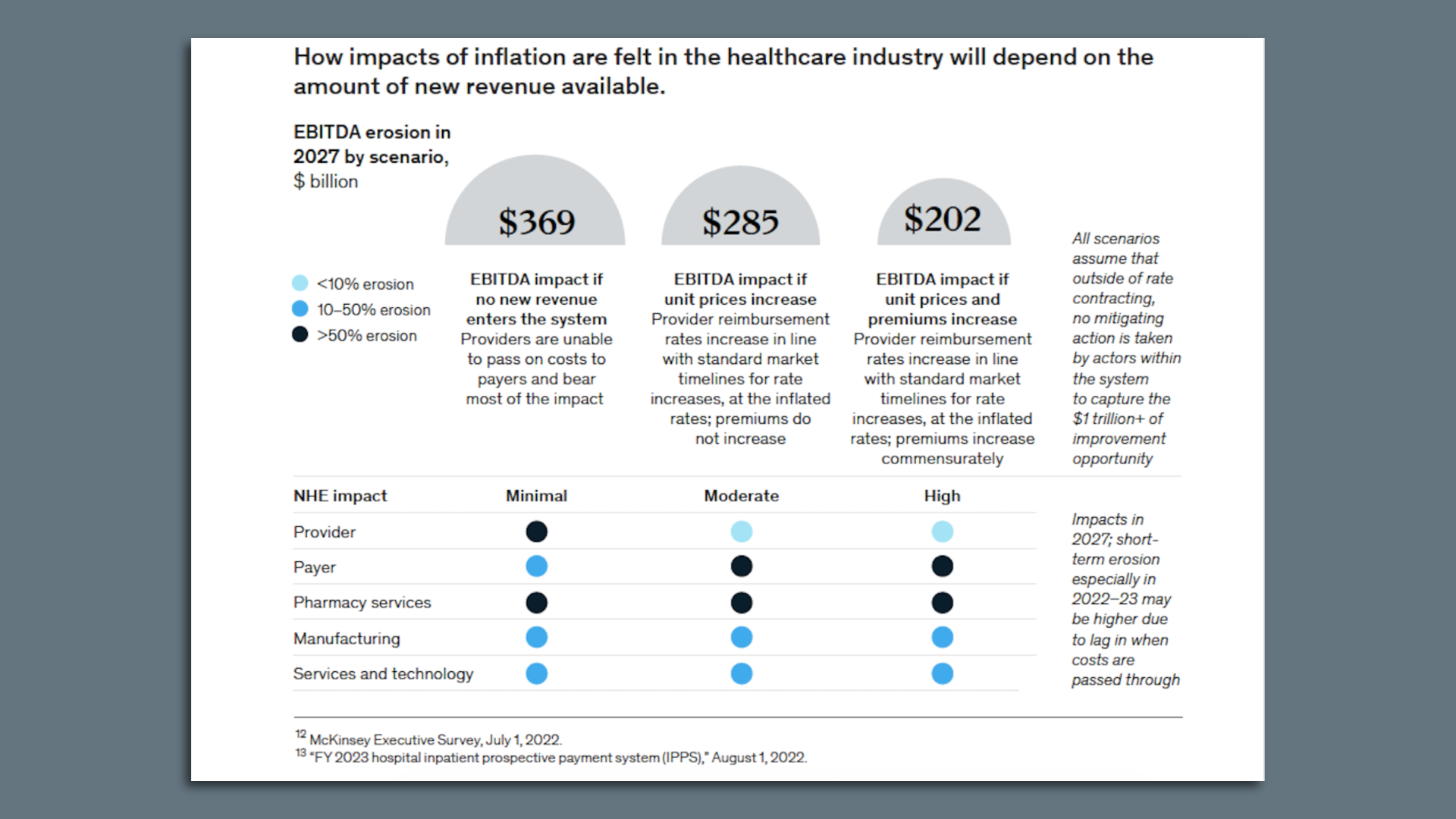Employers, patients or taxpayers could be on the hook for hundreds of billions of dollars in additional health spending if providers and insurers successfully shift those inflation-driven costs, according to a recent McKinsey analysis.