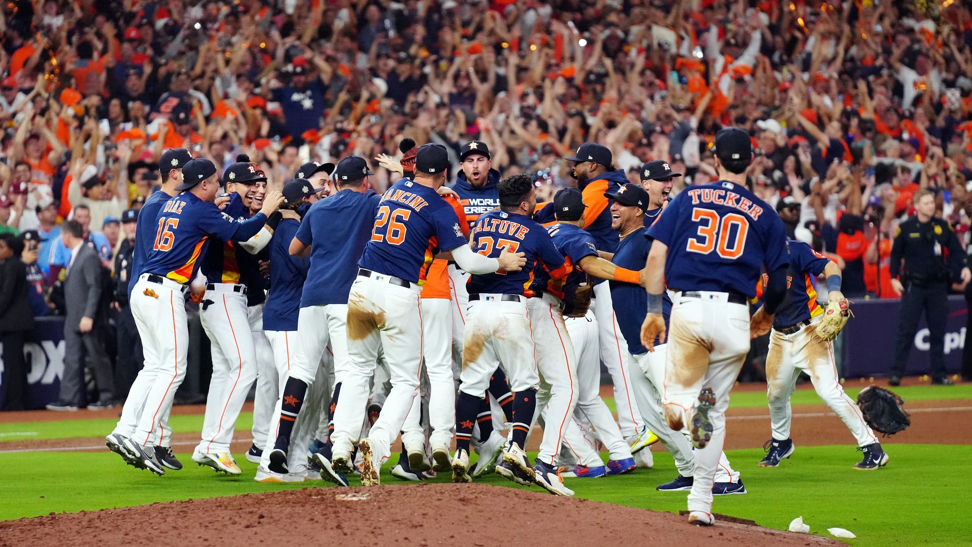The Houston Astros celebrate after they defeated the Phillies, 4-1, in Game 6 of the 2022 World Series on Nov. 5. Photo: Daniel Shirey/MLB Photos via Getty Images