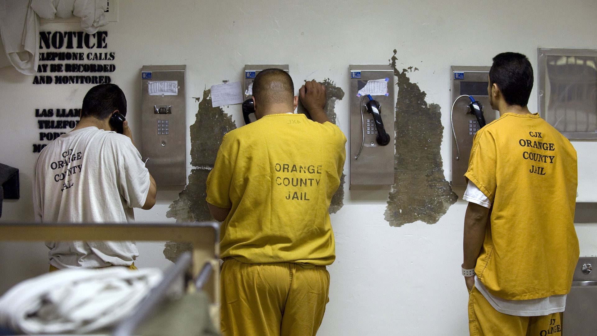 Inmates make collect phone calls at the Central Men's Jail in Orange County, California, in 2011. Photo: H. Lorren Au Jr./MediaNews Group/Orange County Register via Getty Images