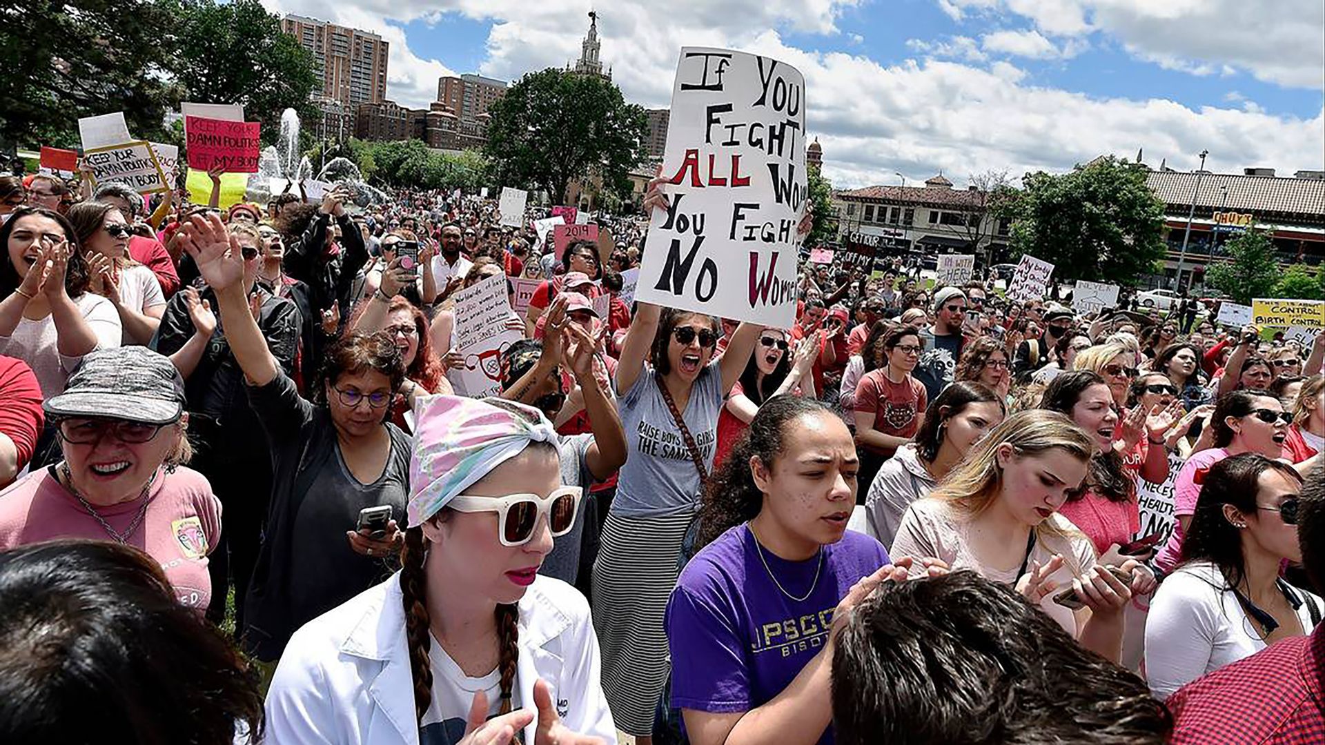 Several hundred protesters march in 2019 in response to the near-total abortion ban passed by Missouri legislators. Phtoto: Jill Toyoshiba/Kansas City Star/Tribune News Service via Getty Images