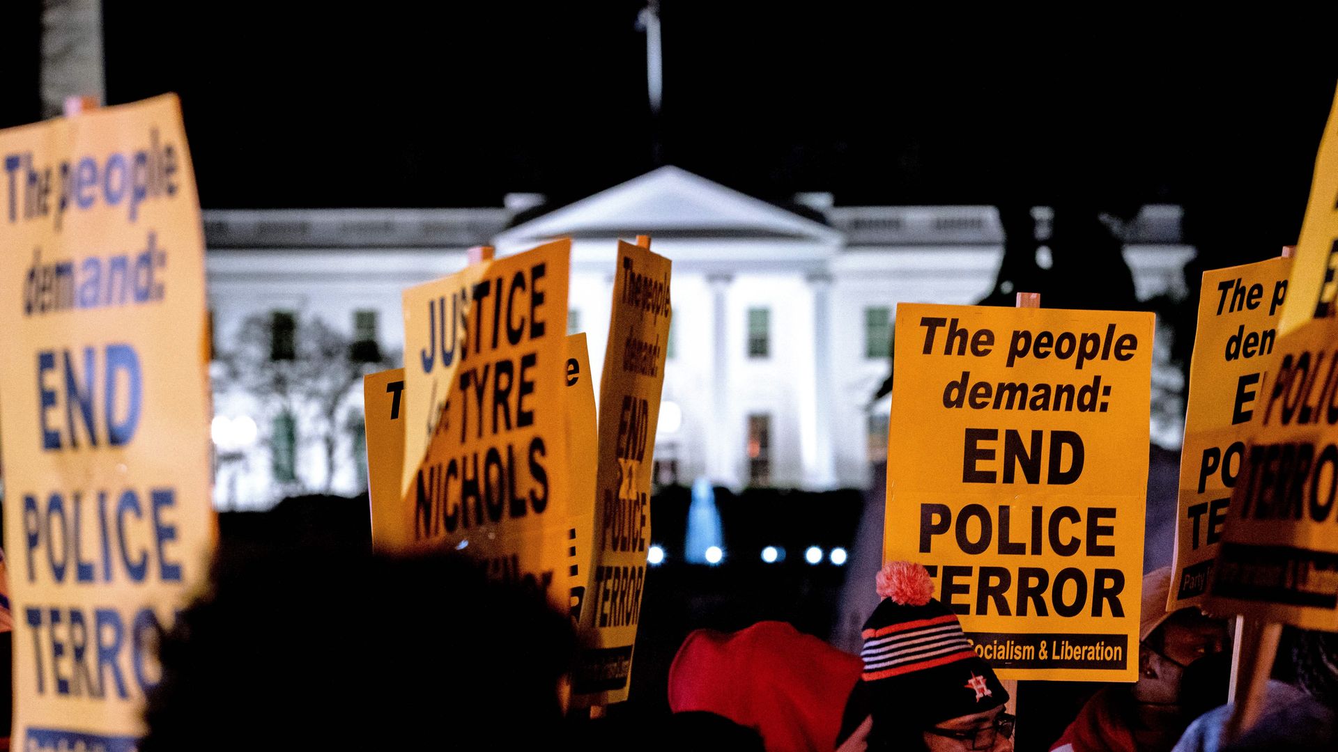Protesters in Lafayette Square in Washington, D.C., on Jan. 27 rally against the fatal police beating of Tyre Nichols. Photo: Pedro Ugarte/AFP via Getty Images