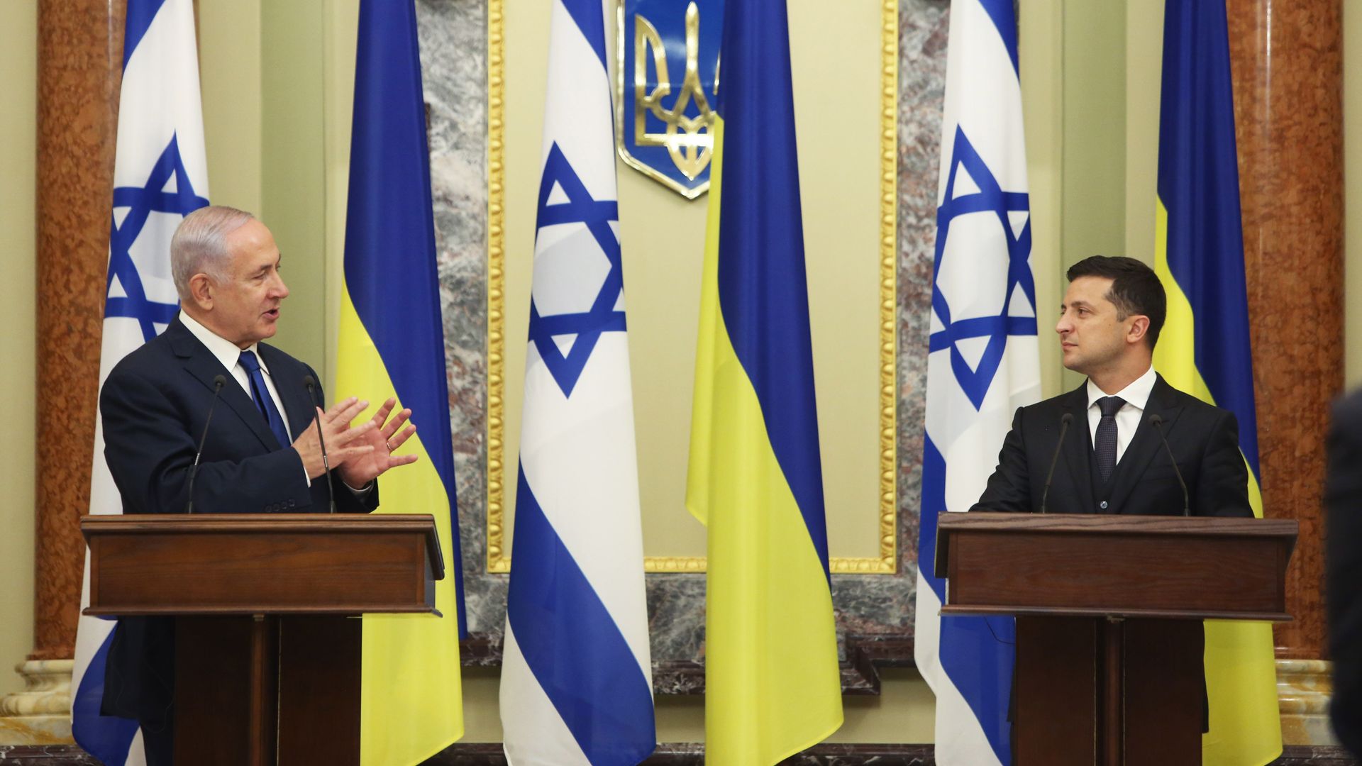 Israeli Prime Minister Benjamin Netanyahu and Ukrainian President Volodymyr Zelensky hold a press conference in Kyiv on Aug. 19, 2019. Photo: Sergey/Xinhua via Getty Images