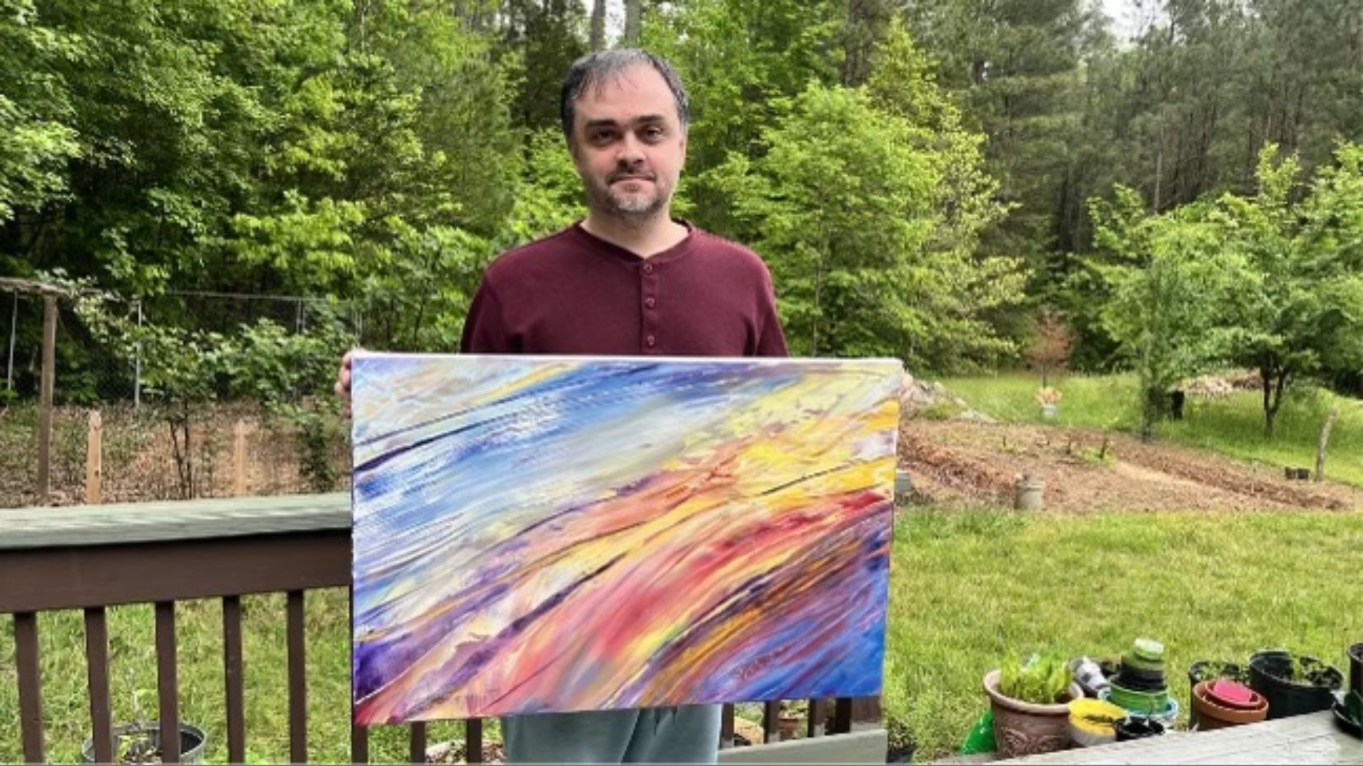 By pure chance, Anatolii heard of the Artist Frame Hub, a program by the The Frame & Print Shop in Chapel Hill, N.C., providing framing for local artists.
