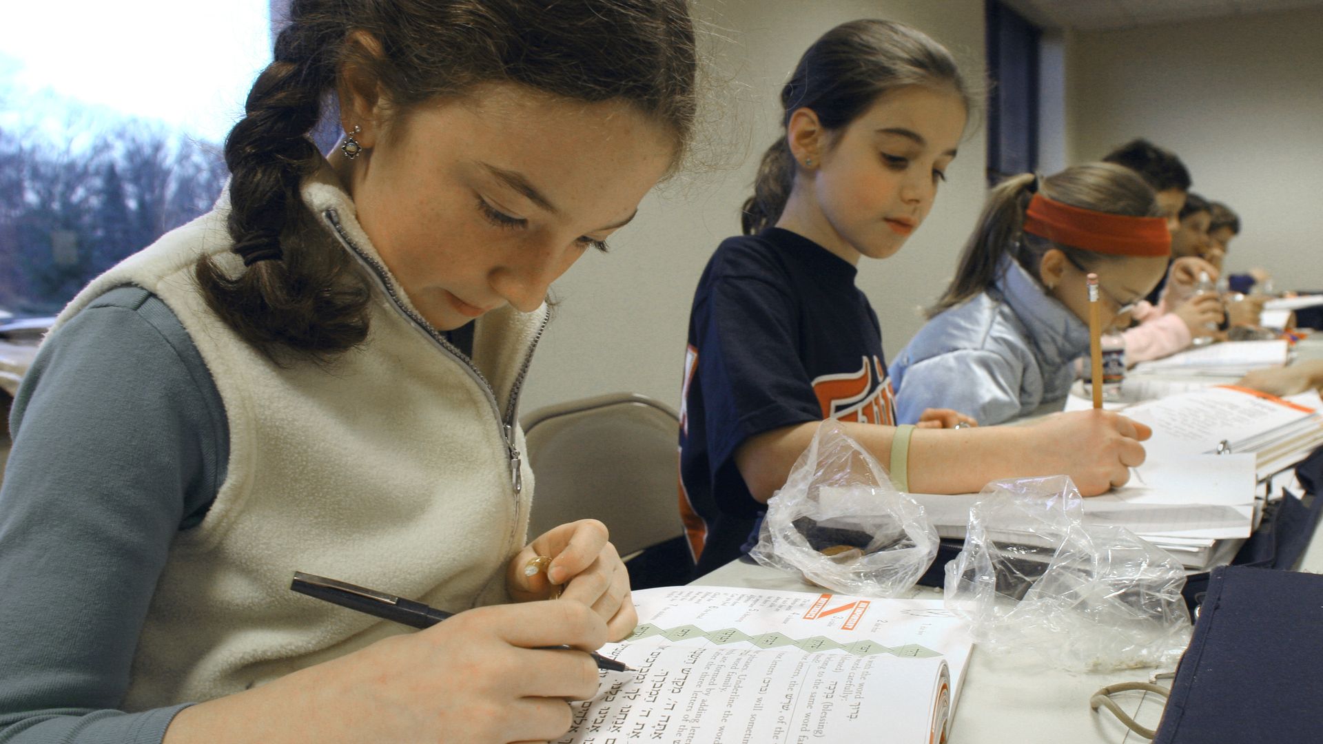 Temple Israel students worked on reading during Hebrew class at the Adath Jeshurun temple in Minnetonka, Minn. Photo: Bruce Bisping/Star Tribune via Getty Images
