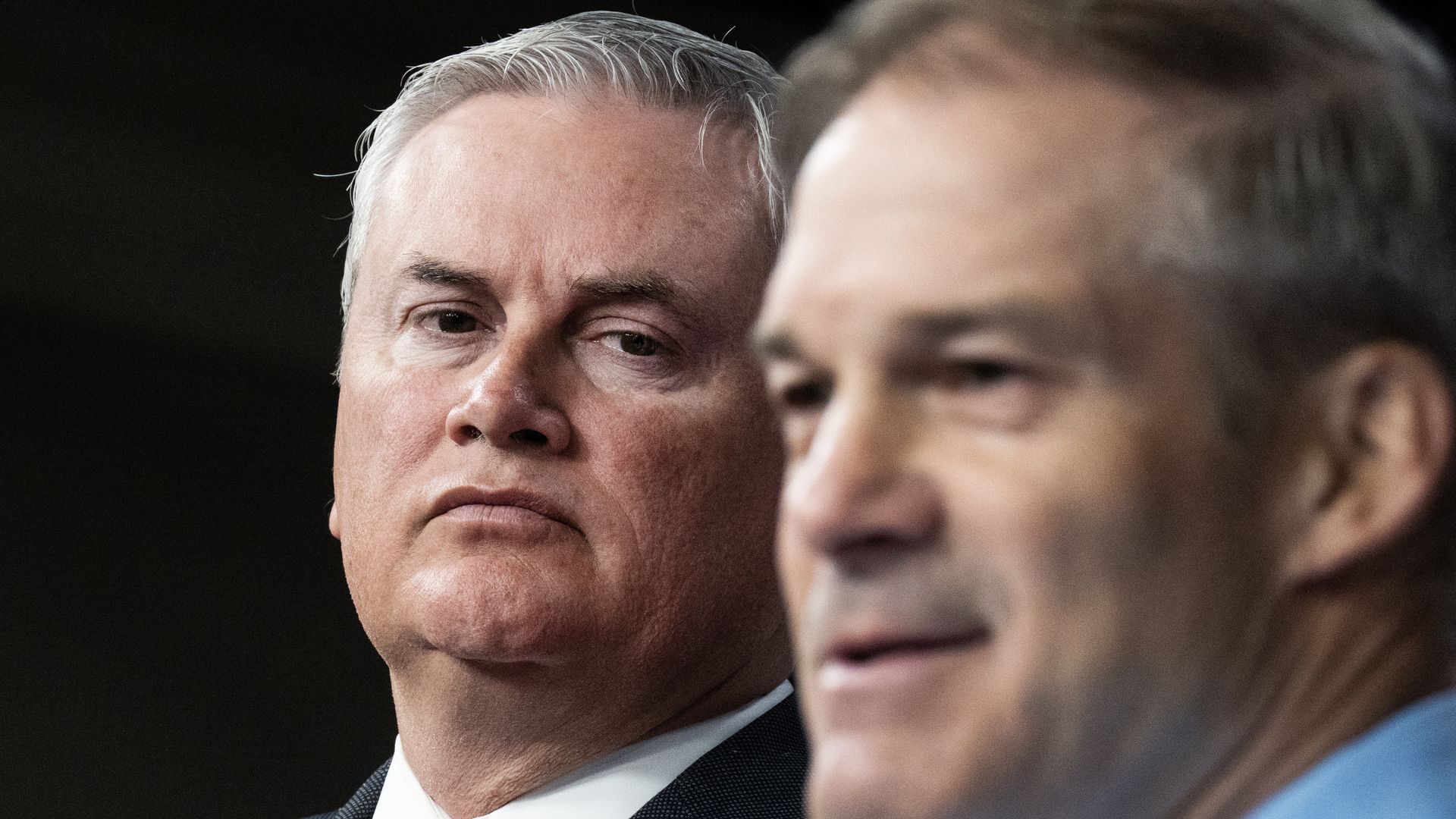 Reps. James Comer, R-Ky., left, chairman of the House Oversight and Accountability Committee, and Jim Jordan, R-Ohio, chairman of the House Judiciary Committee. Photo: Tom Williams/CQ-Roll Call via Getty Images