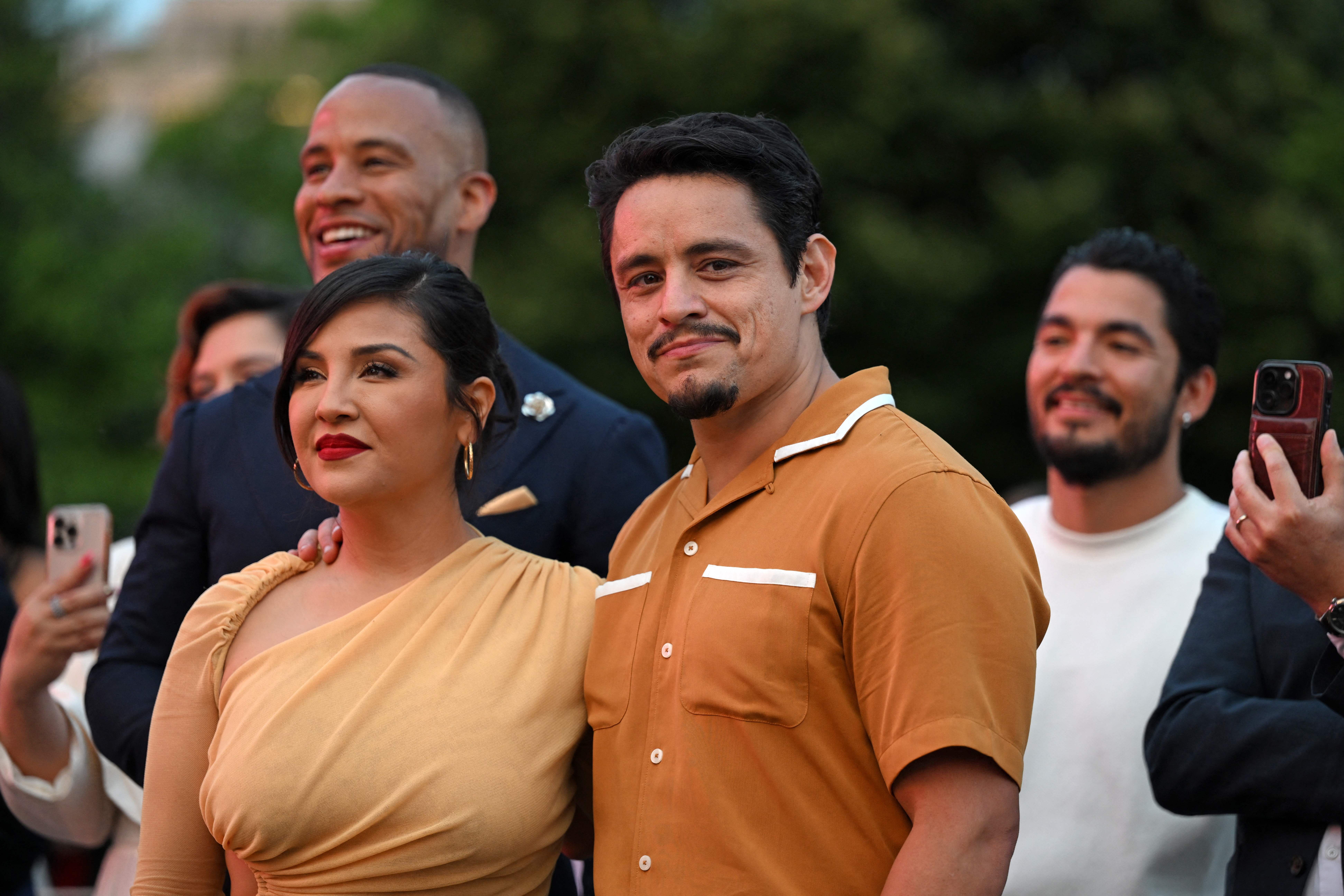 President Biden, First Lady Jill Biden and Director Eva Longoria outside the White House during a screening of Flamin' Hot on Thursday. Photo: Alex Wong/Getty Images