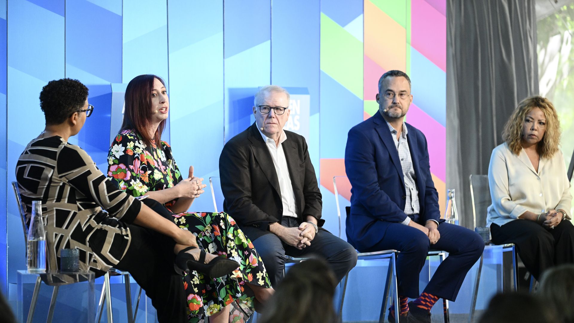 From left to right: Moderator Jenn White, Jennifer Carlson, John Feinblatt, Clark Neily and Rep. Lucy McBath (D-Ga.) at the 2023 Aspen Ideas Festival. Photo: Dan Bayer/Aspen Institute