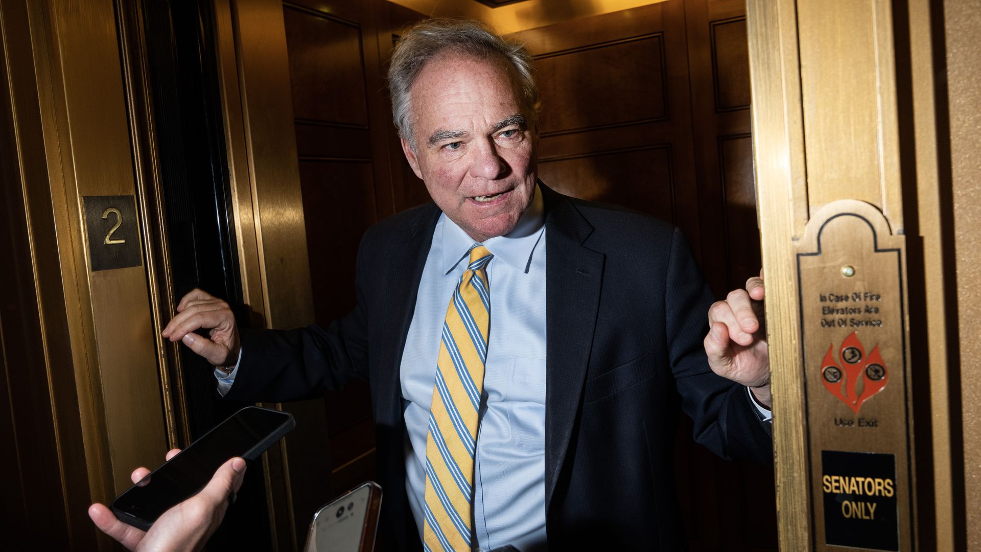 Driving the news: "I think there's going to be a point where the Republicans will not enable this destructive behavior," Kaine told reporters on Friday. "They'll eventually see in the mirror that this doesn't look good and they will figure out a way to make this right."
