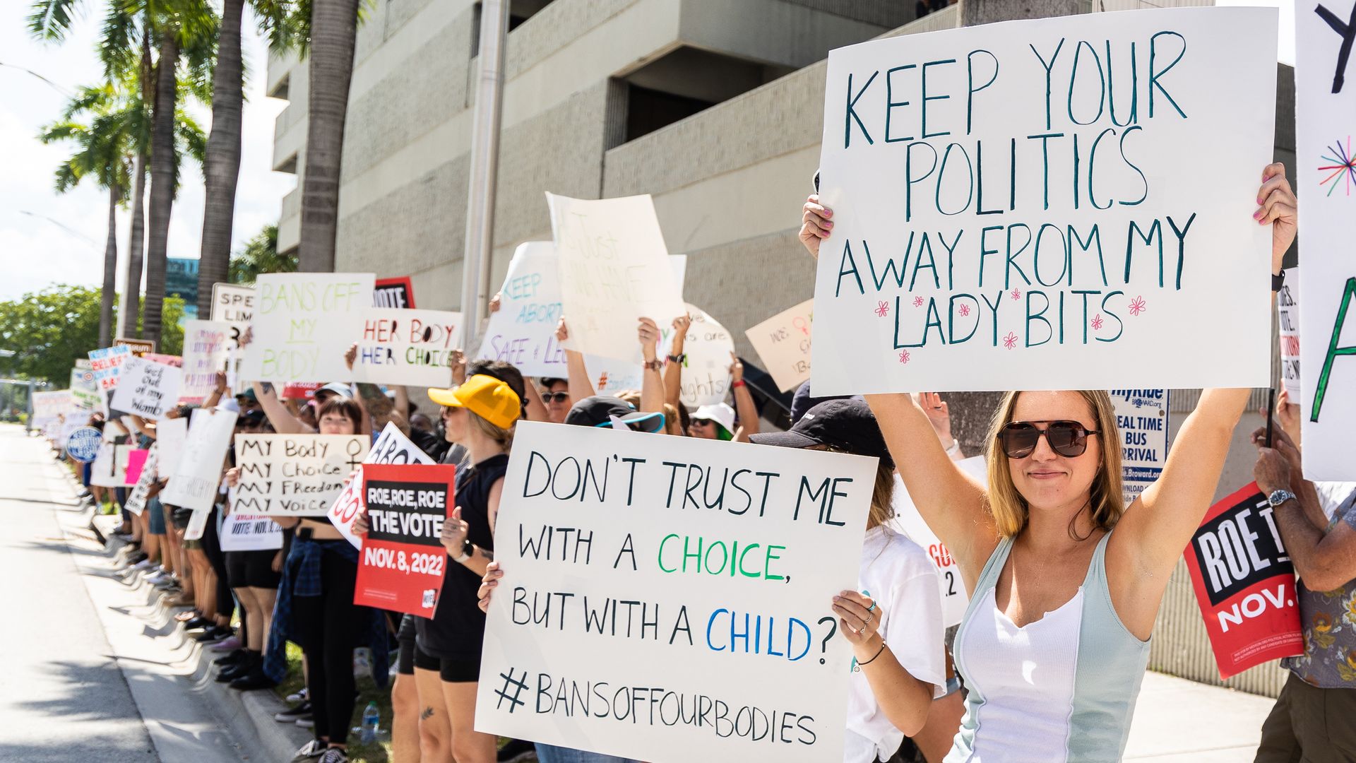 An abortion rights activist holds a sign at a protest on July 13, 2022, in Fort Lauderdale, Florida. Photo: John Parra/Getty Images for MoveOn