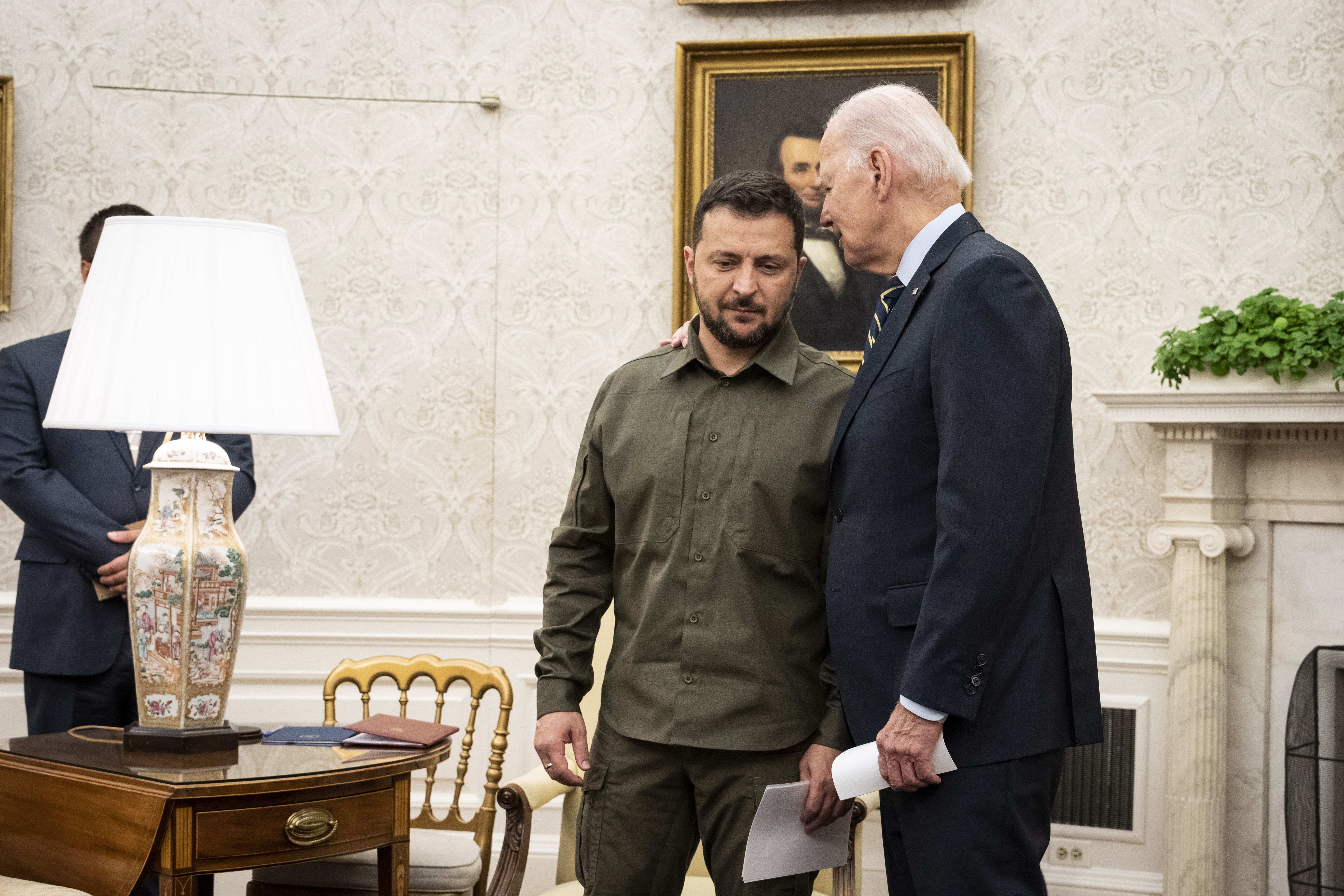 - At the top of Biden's expanded meeting with Zelensky, the Ukrainian president was asked by reporters whether he thinks Congress will approve additional aid.
