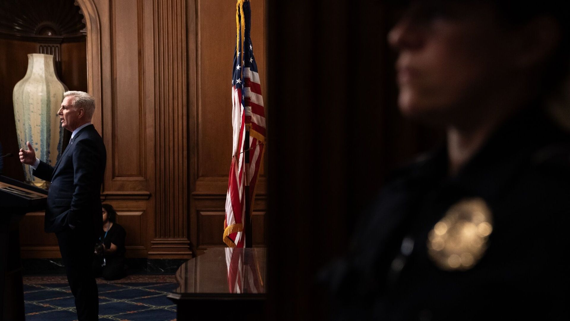 - House Financial Services Chair Patrick McHenry (R-N.C.) was appointed as interim speaker, immediately recessing the House to allow the two parties to huddle separately.