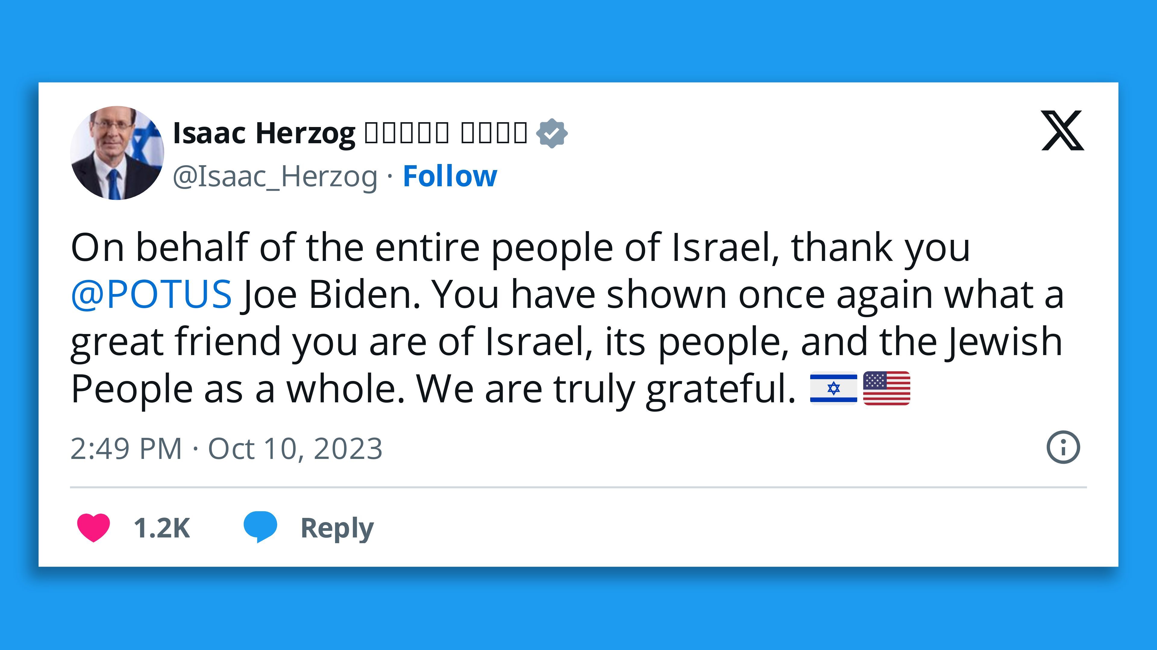 - The speech wasn't just intended to express empathy and reassure Israelis about their security; it was also meant to deter other actors in the region, such as Iran or Hezbollah, from joining the war.