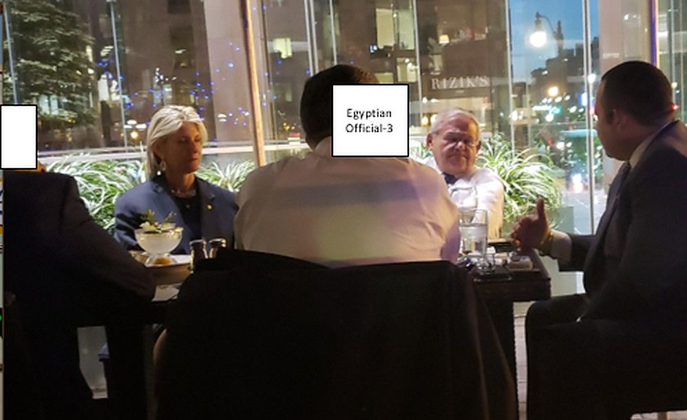 Separately, in 2019, the senator, Nadine Menendez and Hana were pictured meeting with an unnamed Egyptian official and an Egyptian-American associate of Hana for dinner, at which they discussed foreign policy issues, prosecutors said.