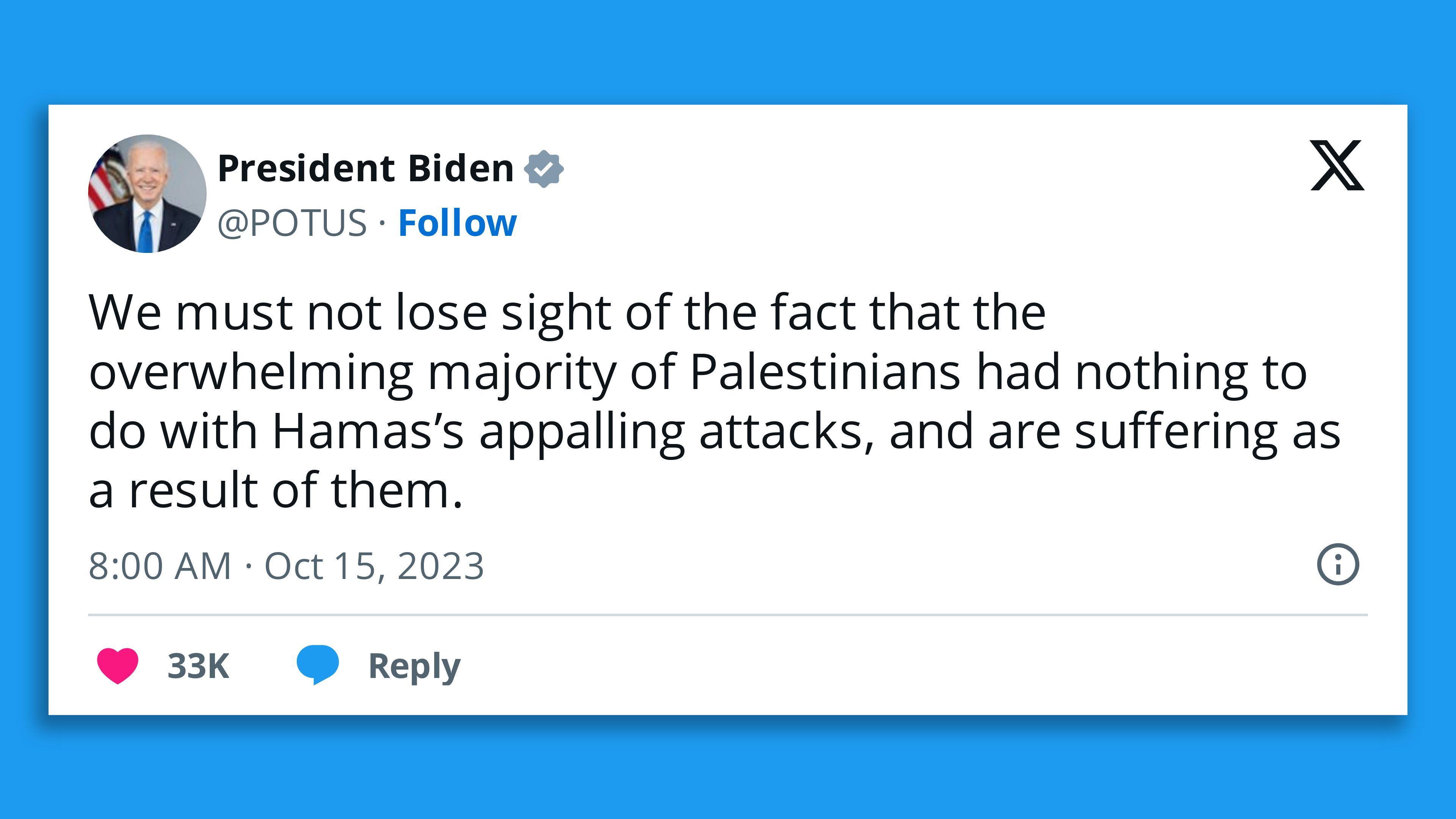 - "In fact, President Biden saw Prime Minister Netanyahu just weeks before this attack to discuss the security challenges facing the state of Israel."