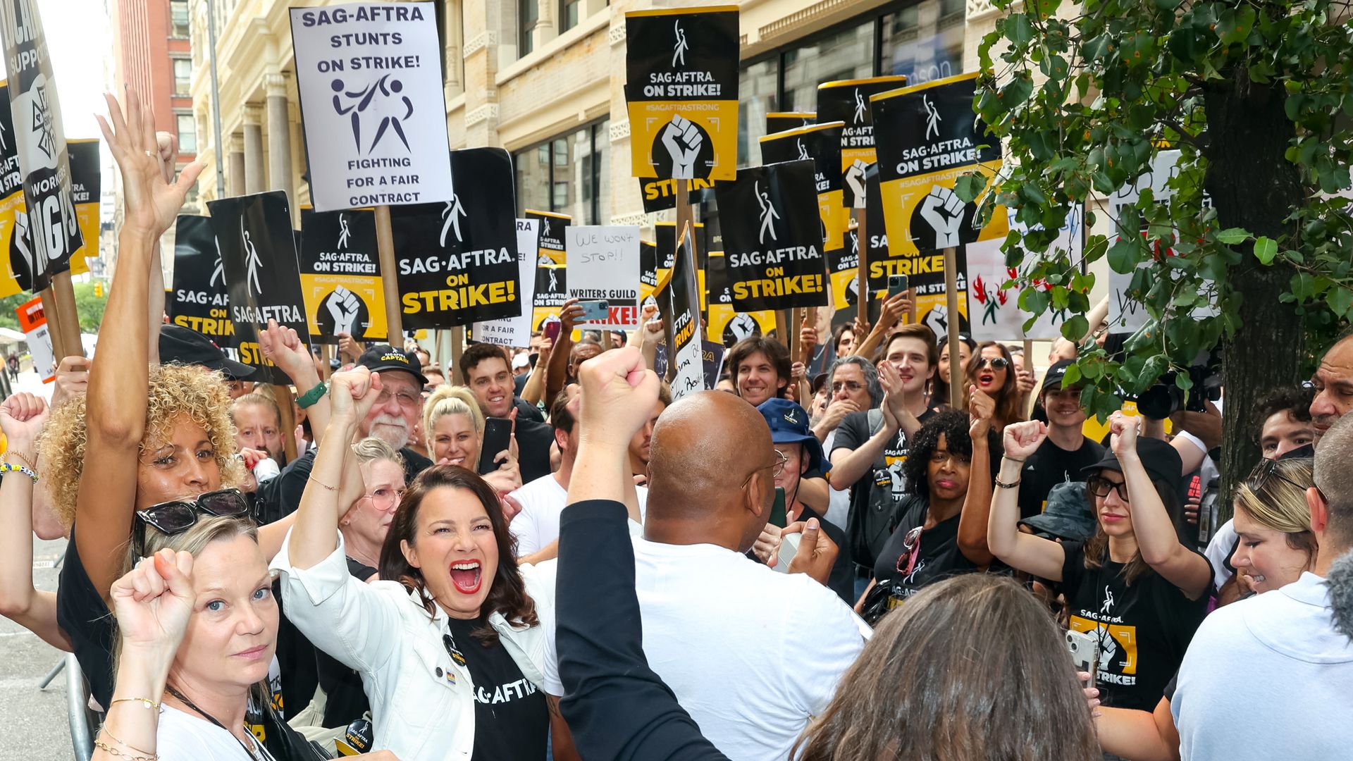 SAG-AFTRA members picketing in New York City. Photo: Jose Perez/Bauer-Griffin/GC Images
