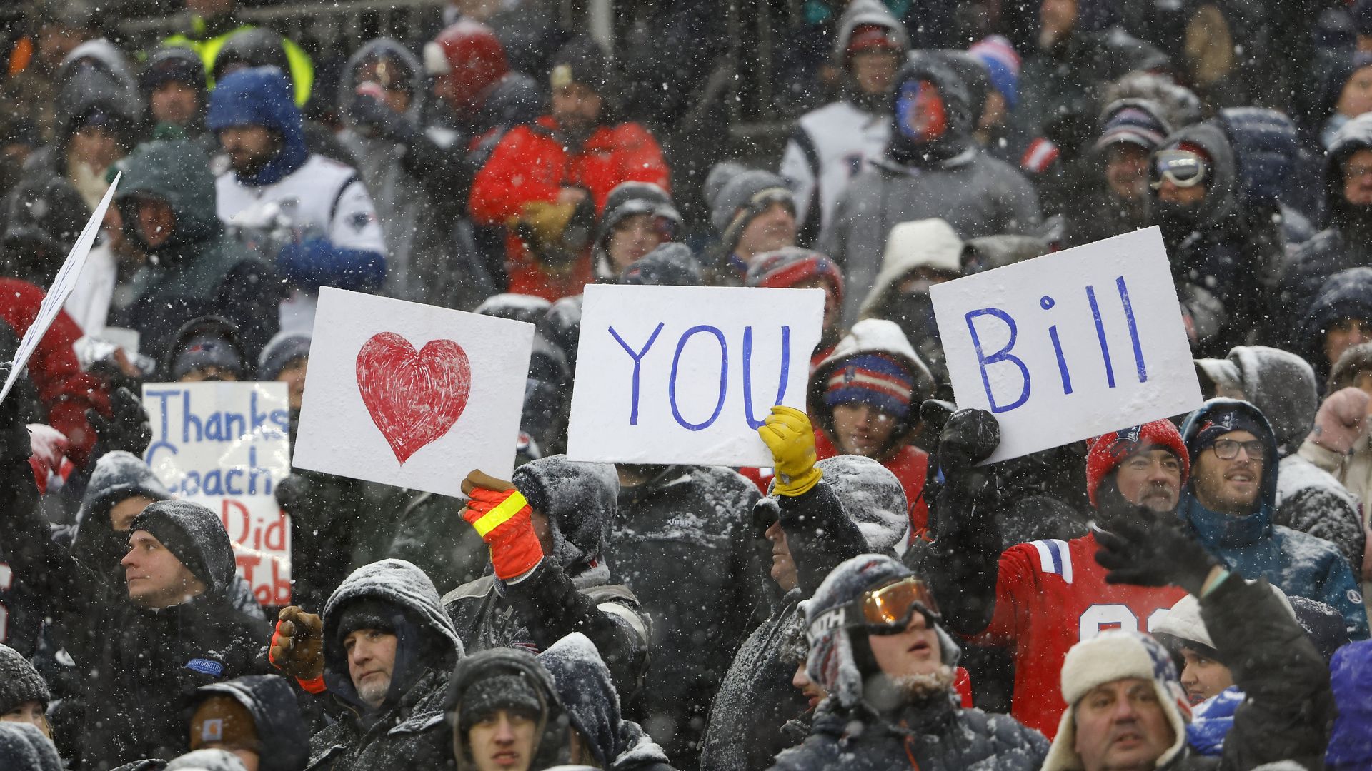 Fans thanked Belichick at Sunday's snowy game against the Jets. Photo: Winslow Townson/Getty Images