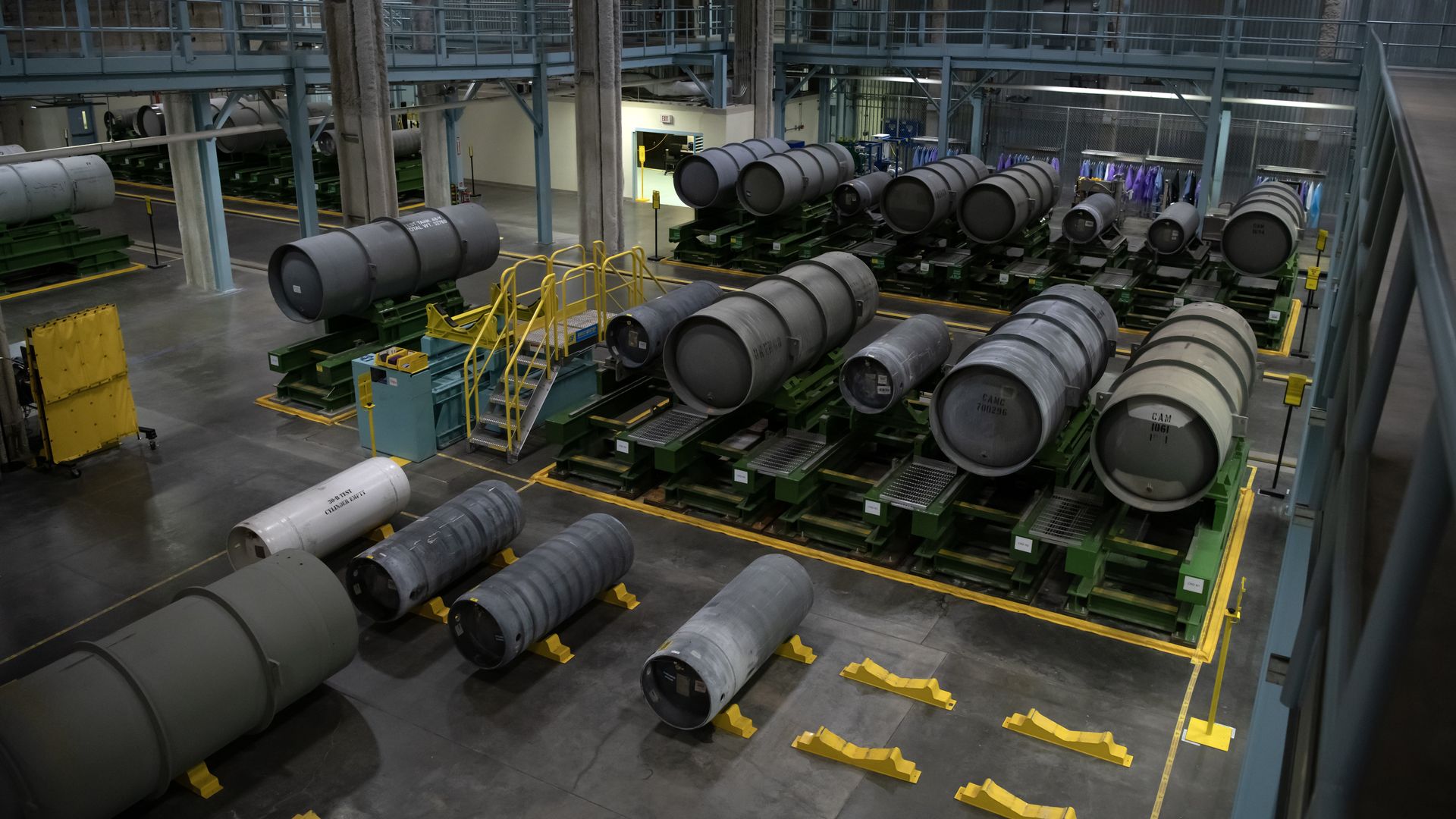 Canisters filled with enriched uranium at the Urenco USA uranium enrichment facility in New Mexico on July 11, 2023. Photo: Mark Felix/Bloomberg via Getty Images