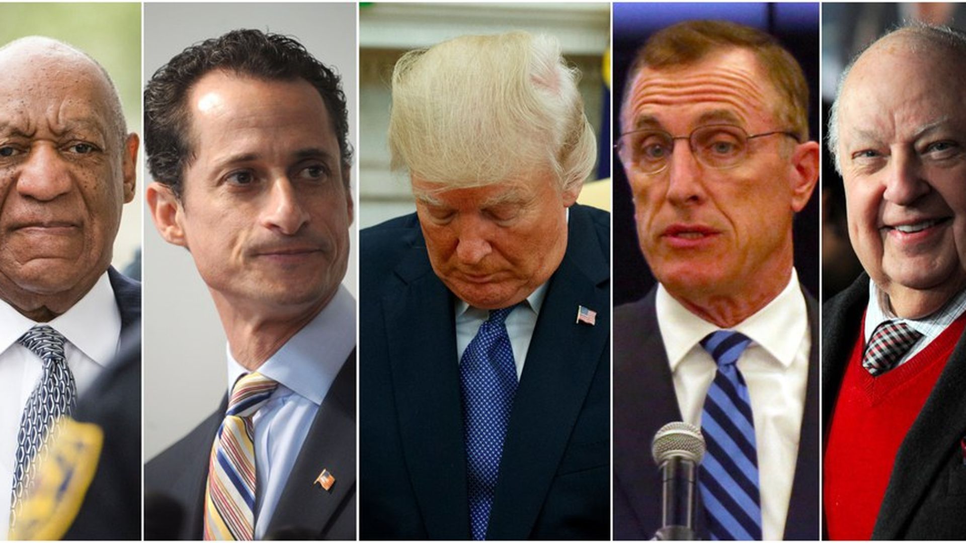 From left to right: Bill Cosby, Anthony Weiner, President Trump, Tim Murphy and Roger Ailes. Photos: Dennis Van Tine, MediaPunch, Keith Srakocic, Evan Vucci, Matt Rourke / AP