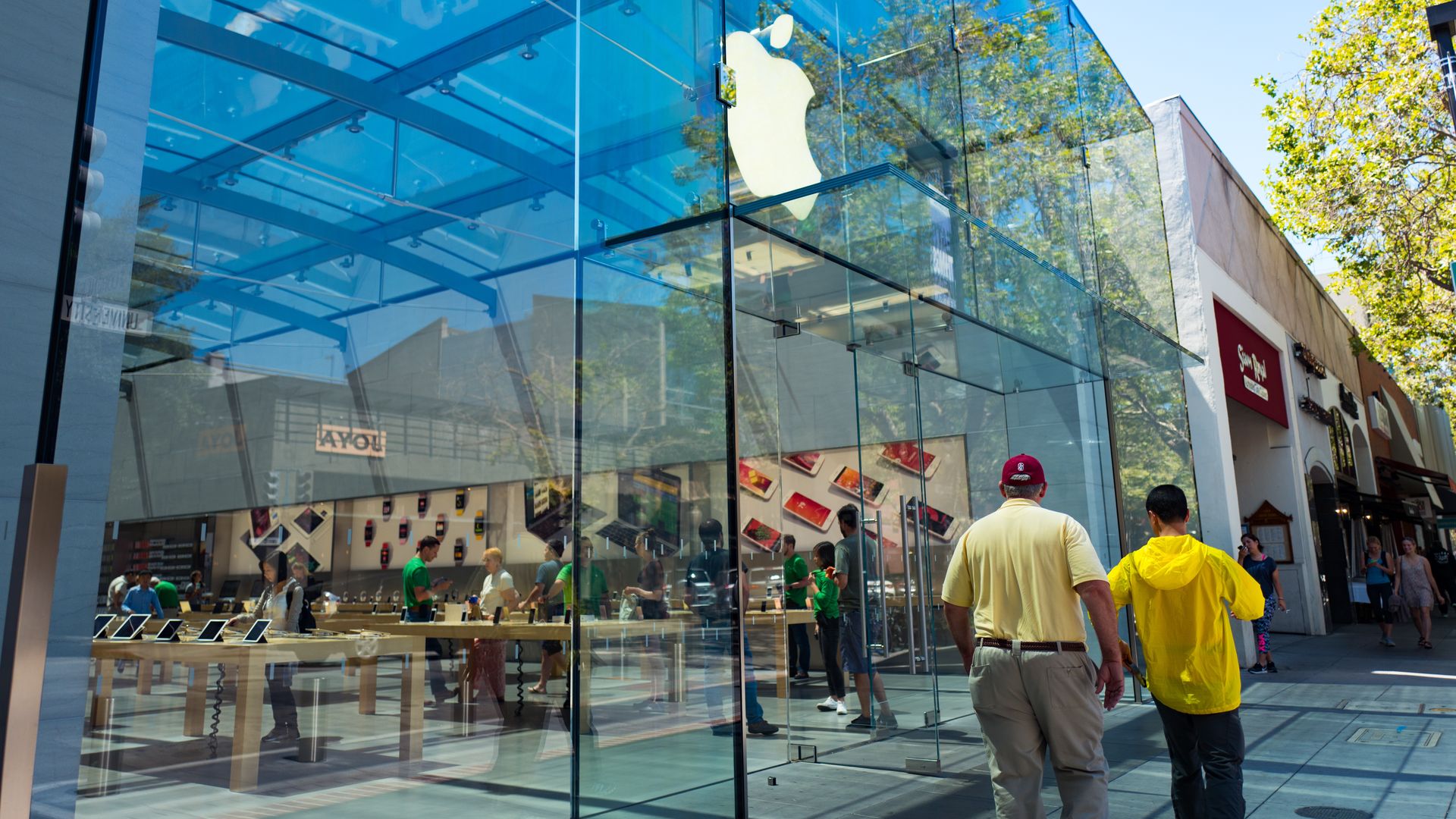 Around the world, an Apple store is a sign of retail health. Here, in Palo Alto, CA. Photo: Smith Collection/Gado/Getty Images