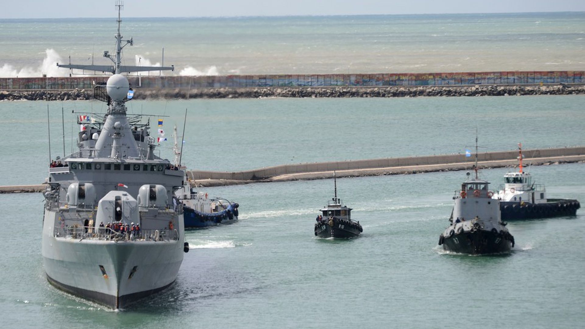 A ship leaves an Argentina Naval base to join the search for missing submarine ARA San Juan. Photo: Marina Devo / AP