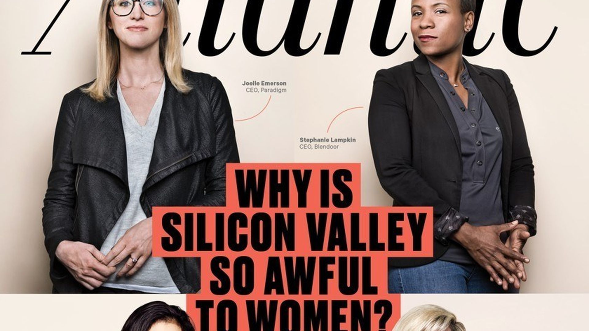 Axios' Kia Kokalitcheva writes from S.F.: "[T]he new Atlantic cover story [Liza Mundy's "Why Is Silicon Valley So Awful to Women?"] is a good read. And I'm sure all the women in the Valley did a collective nod and sigh — this is all too familiar for us."