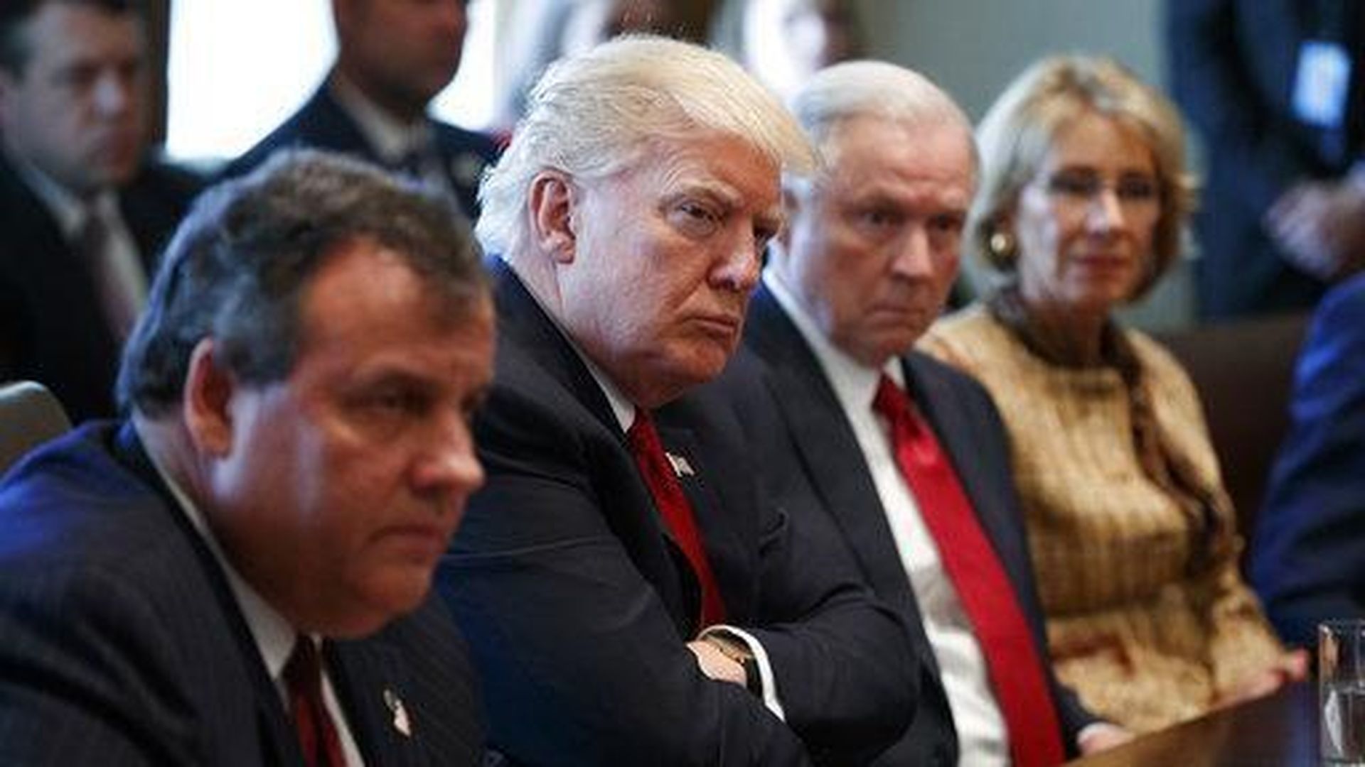 Behind the curtain: Axios' Jonathan Swan today sat in Reince Priebus' office with Steve Bannon, Jared Kushner, and Reince's deputy, Katie Walsh, who — fed up with the internal "Game of Thrones," and treated with suspicion by some prominent West Wing colleagues — is leaving to help launch Trump's outside political group, America First Policies.